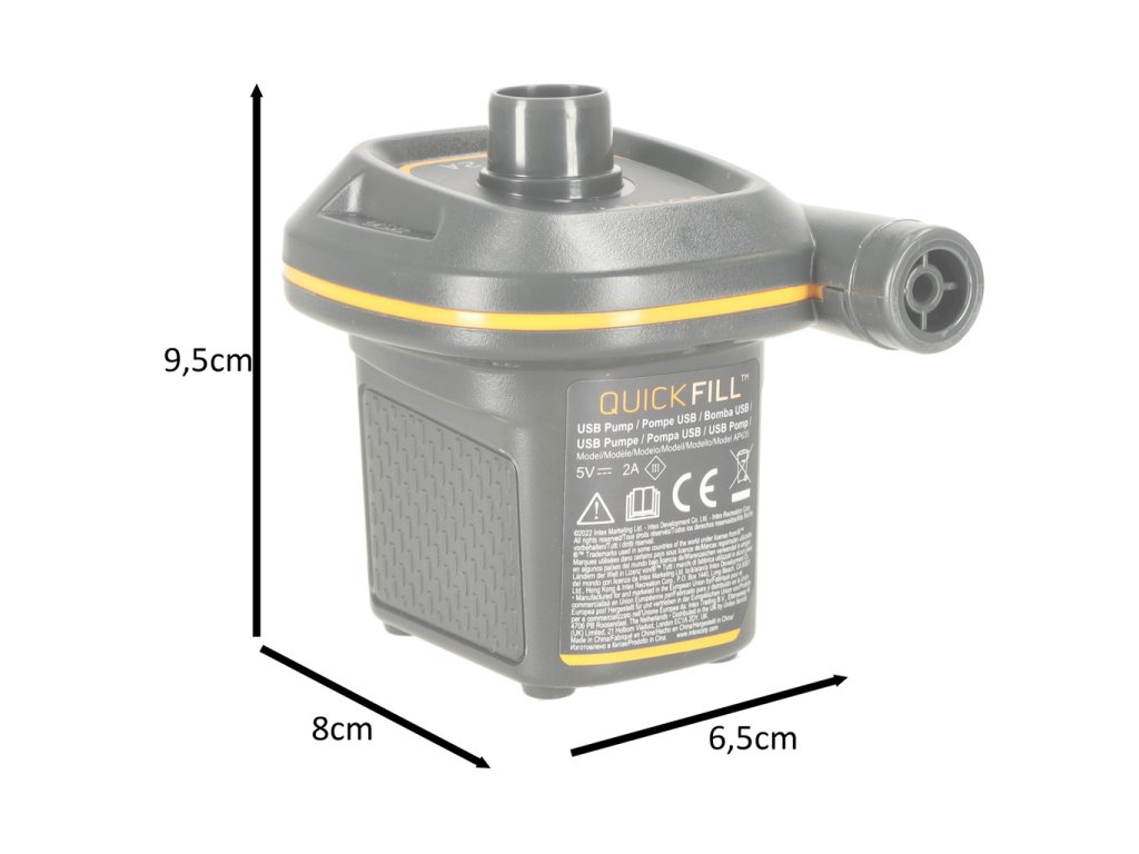 V kompletu sta priloženi dve konici, ki omogočata uporabo črpalke z različnimi ventili. Napajanje iz katerikoli vir energije - USB kabel lahko povežete na polnilec, power bank ali drug USB vrata.