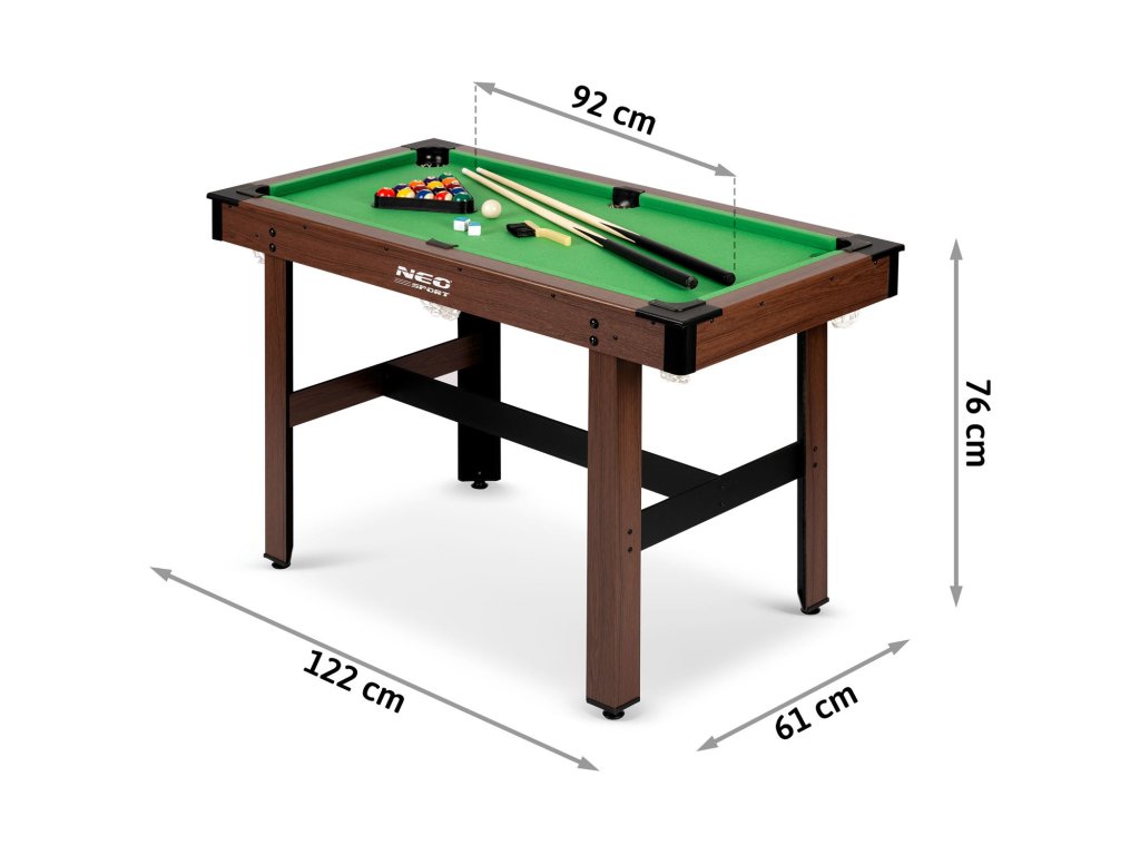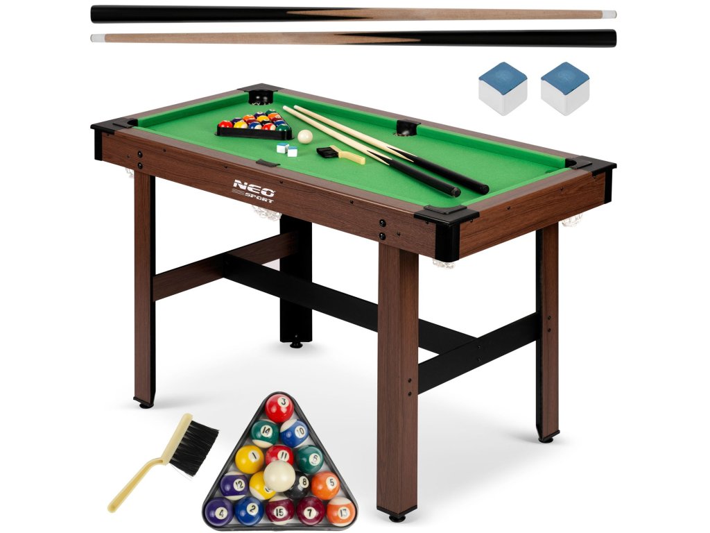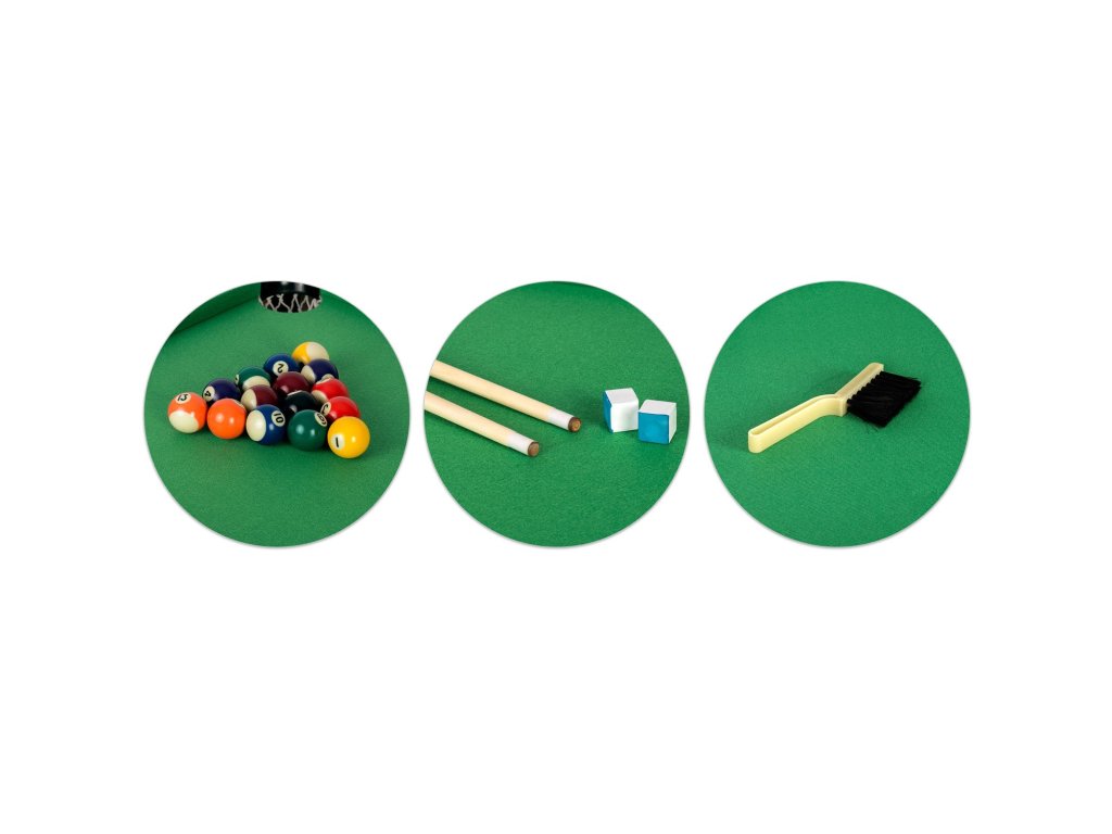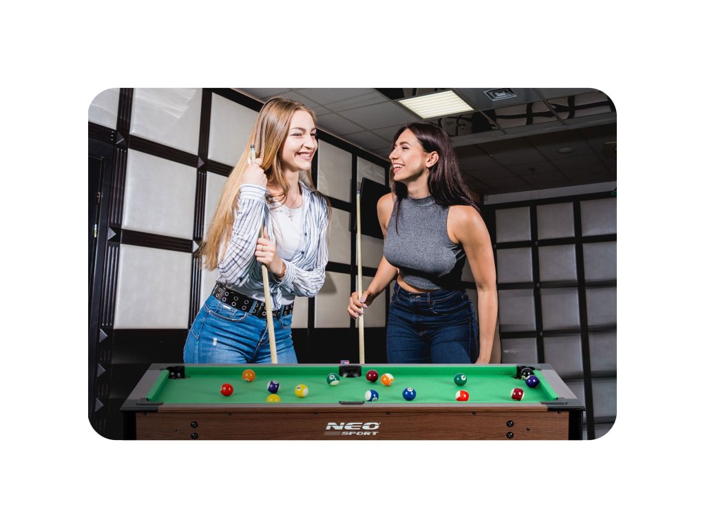 NS-807 lahko nastavite hitro in enostavno. Miza je varna in stabilna, tako da se otroci lahko osredotočijo na uživanje v igri. Set vsebuje celoten set dodatkov, tj. 2 palici, 16 krogel, trikotnik, biljardno kredo in čistilno ščetko. Z eno besedo popolna profesionalnost! Idealno za trening mladega biljardnega mojstra.