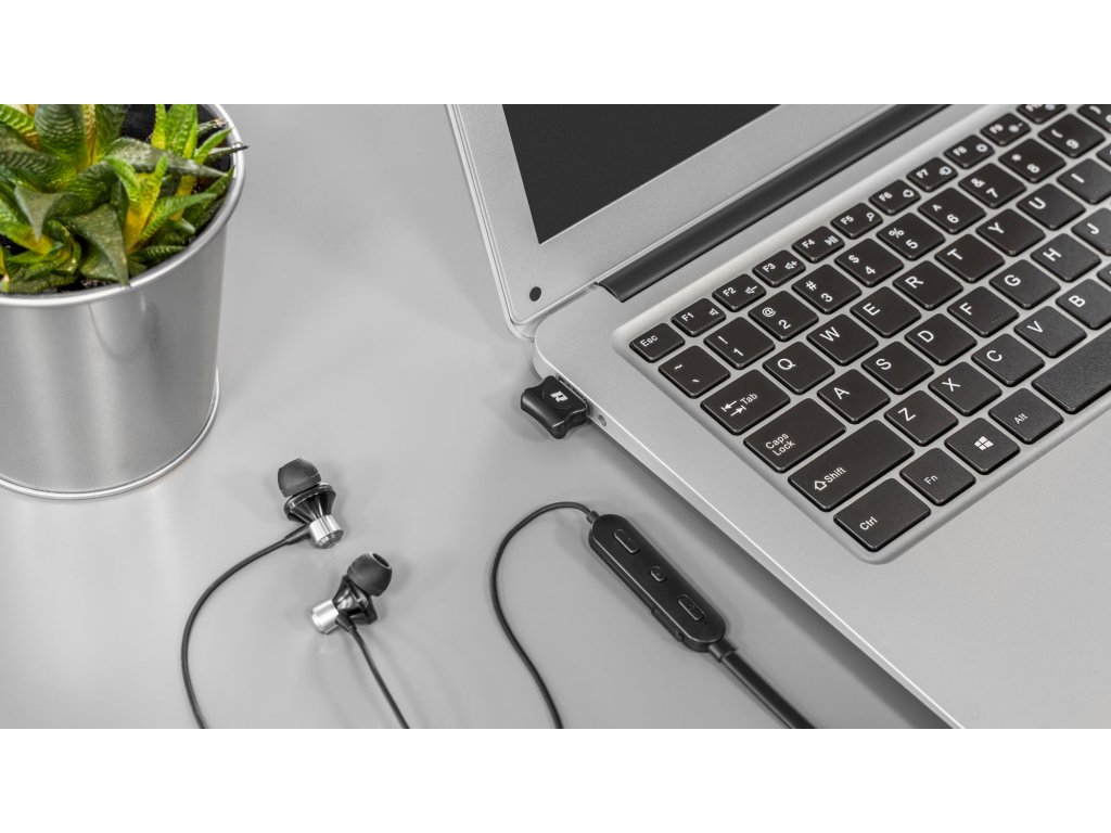 Osvobodite se kablov! Zunanji modul Bluetooth vam omogoča brezžično povezovanje računalniških dodatkov, igralne ploščice, slušalk, zvočnikov ali tiskalnika – tudi če vaš računalnik ali prenosnik te možnosti tovarniško ne omogoča. Pomembno je, da je adapter opremljen z različico Bluetooth 5.0. To pomeni stabilno povezavo, hiter prenos in velik, 10-metrski doseg delovanja.