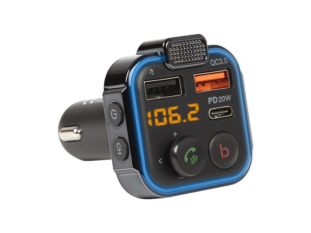 Visokokakovosten večfunkcijski prostoročni set s funkcijo FM oddajnika in USB polnilcem. Izdelek poveča funkcionalnost tudi najpreprostejšega avtoradia, s čimer izboljša udobje potovanja. Z uporabo te naprave lahko predvajate glasbo tudi prek svojega telefona ali katere koli druge naprave z Bluetooth funkcijo.