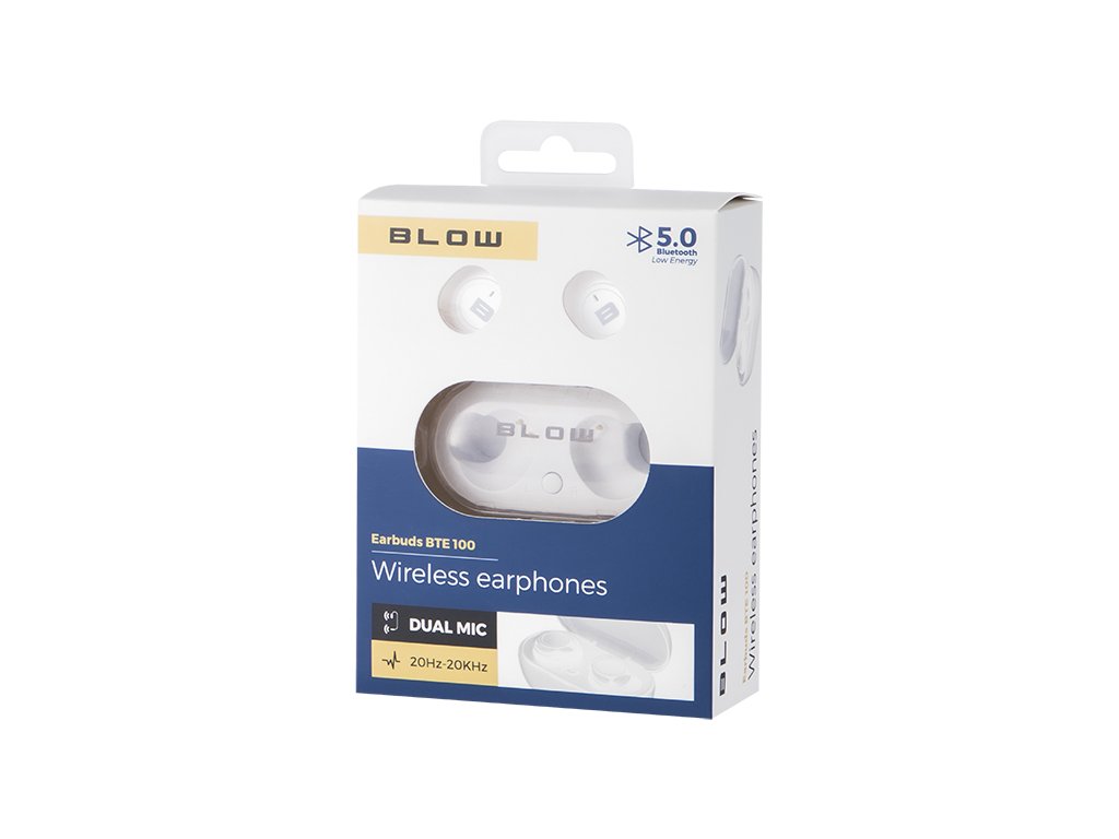 Vysokokvalitné bezKábelové slúchadlá do uší BTE100 od spoločnosti Blow sú zárukou príjemného zvuku a plného pohodlia pri počúvaní hudby - zariadenia sú ľahké a dokonale priliehajú k ušiam, takže mnoho hodín počúvania nie je problém. Zabudovaný dotykový panel umožňuje ovládať hudbu a spravovať hovory, zatiaľ čo priestranné batérie a dodané nabíjacie puzdro vám umožnia dlhodobú prevádzku.
