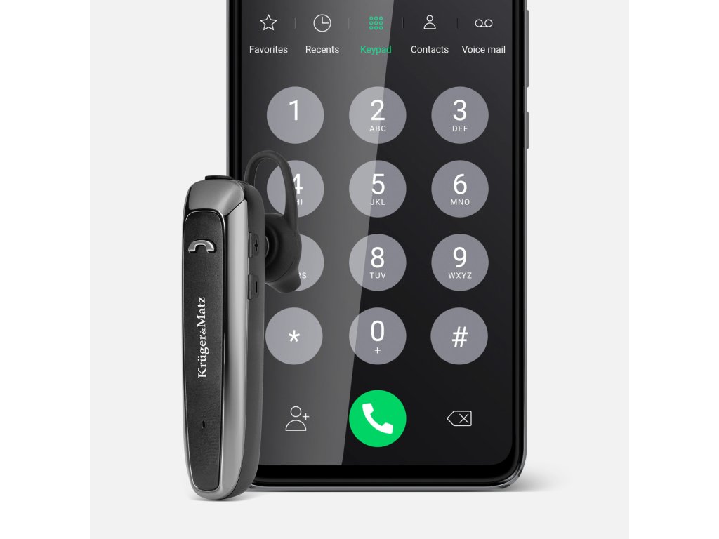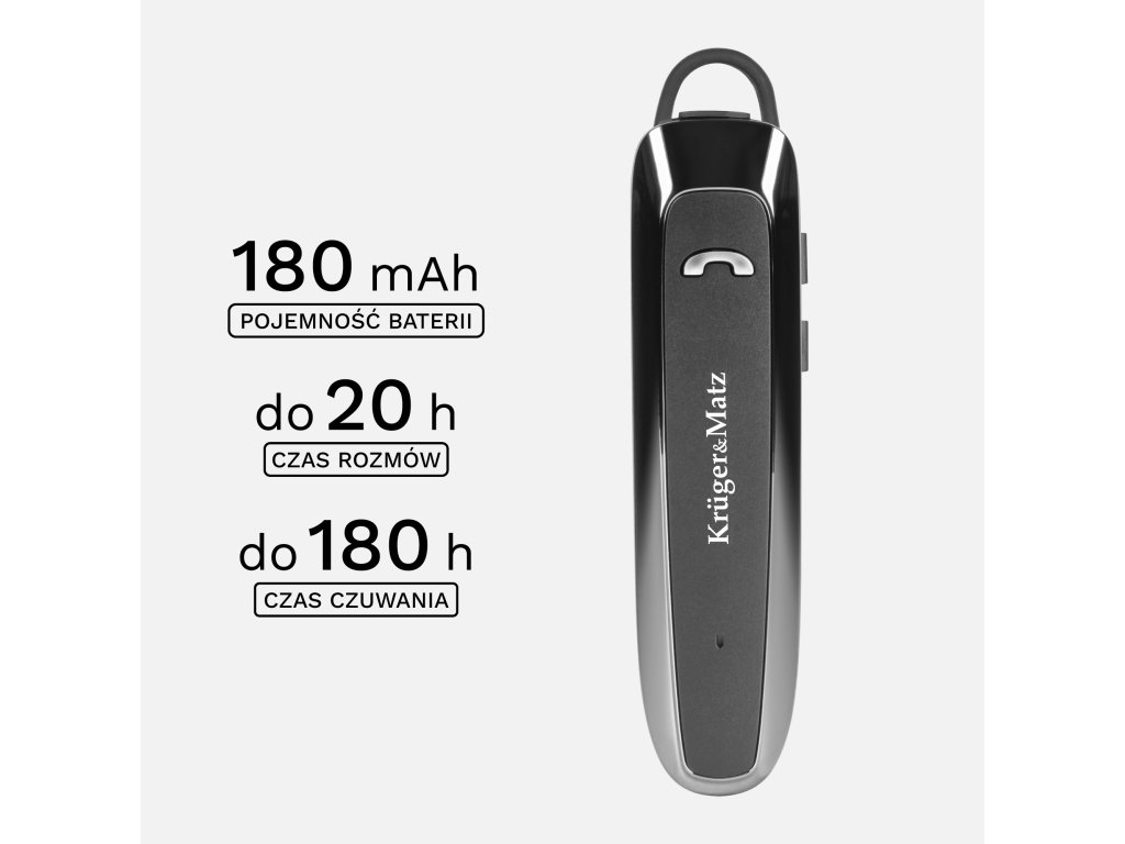 Bluetooth slušalka Kruger&Matz je zasnovana tako, da izpolnjuje vaše zahteve, zato ponuja vrsto ugodnosti, vključno z glasovnim izbiranjem, glasnimi in zvočnimi obvestili ter podporo več povezavam.