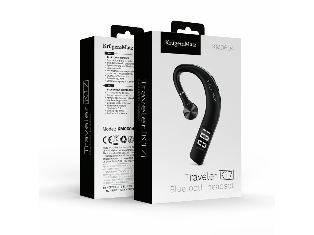 Slušalka Bluetooth Kruger&Matz Traveler K17 je idealna rešitev za ljudi, ki cenijo udobje, mobilnost in zanesljivo povezljivost. Zaradi ergonomske in lahke zasnove se odlično obnese med dolgimi pogovori in potovanji. Uporaba tehnologije Bluetooth 5.2 zagotavlja stabilno povezavo in širok doseg.