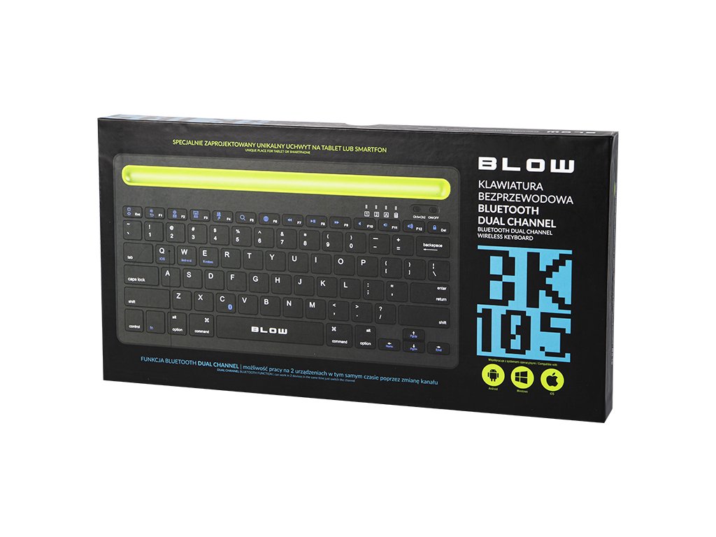 Brezžična tipkovnica Bluetooth s posebej zasnovanim unikatnim držalom za tablico ali pametni telefon. Funkcija Dual Channel omogoča delo na dveh napravah hkrati s preklapljanjem kanala. Vgrajena baterija, tiho delovanje tipk, majhna naprava in majhna teža, odpornost na prah in umazanijo ter možnost dela na večji razdalji od računalnika (doseg Bluetooth tudi do 10 m!) - vsi ti elementi bodo uporabo naredili še bolj udobno in prijetno!