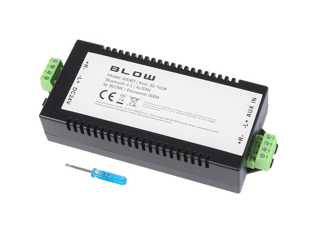 Visokokakovostni avdio ojačevalnik Bluetooth znamke Blow omogoča priklop brezžičnih naprav na zvočnike z nizko impedanco. Majhne mere omogočajo montažo izdelka na številnih mestih. Ojačevalnik se odlikuje po dobrih parametrih in združljivosti z večino brezžičnih naprav. Namenjen je predvsem za prostore, v katerih se pričakuje izboljšanje avdio sistema.