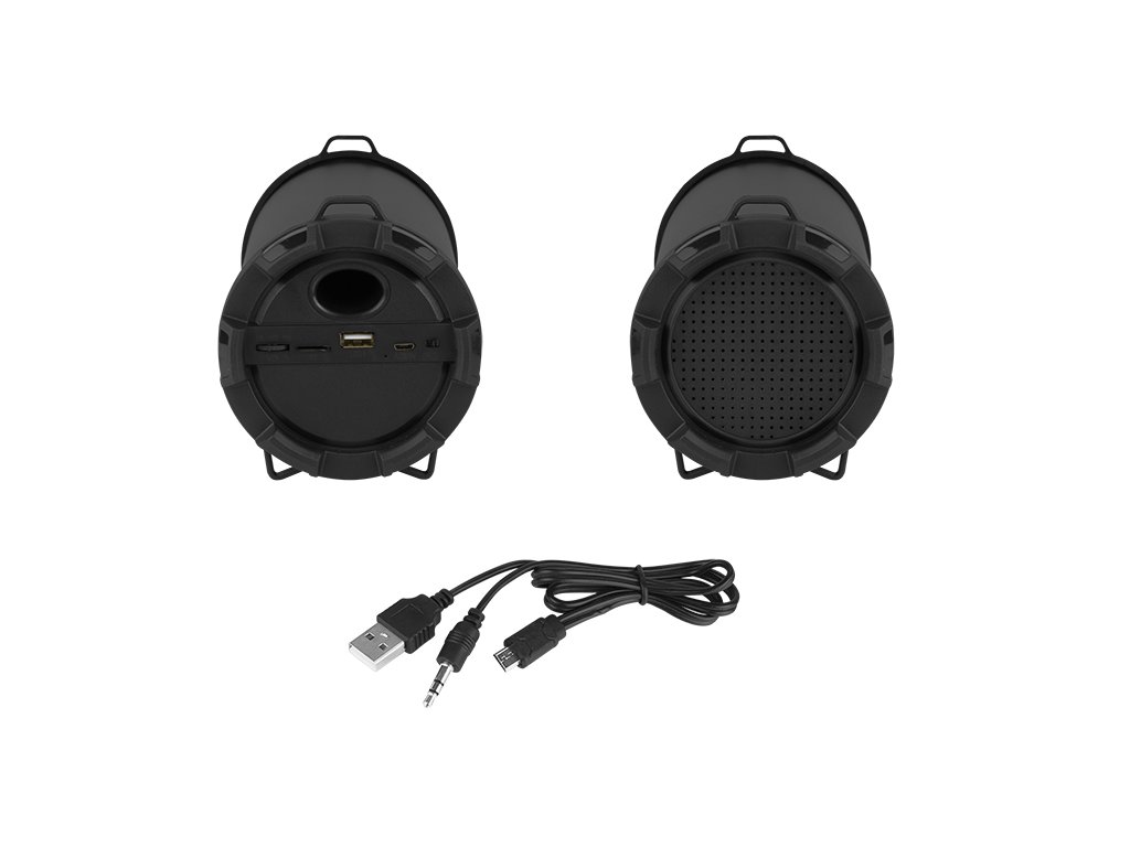 S priloženim modernim micro USB kablom lahko zvočnik ne le polnite, ampak tudi poslušate glasbo iz katere koli naprave, opremljene z 3,5 mm vhodom mini Jack. Preprosto priključite kabel na zvočnik in pametni telefon ali drug predvajalnik, z večfunkcijskim stikalom preklopite na funkcijo AUX in uživajte v naši najljubši glasbi.