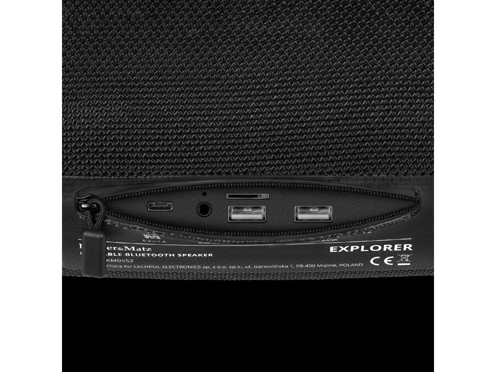 Pri Bluetooth zvočnikih je pomembna tudi dodatna funkcionalnost. Z upoštevanjem tega je prenosni zvočnik Kruger&Matz Explorer opremljen z dodatnim USB priključkom, ki omogoča polnjenje zunanjih naprav. Naprava ima tudi vgrajen mikrofon, ki vam omogoča upravljanje glasovnih klicev. Poleg tega ima ta model funkcijo True Wireless Stereo, s pomočjo katere lahko povežete dva zvočnika Explorer in podvojite odmerek glasbe.