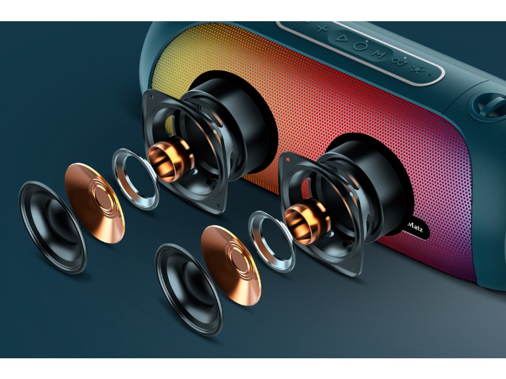 Vklopi zvočnik Bt Street XL in se pusti hipnotizirati dinamiki zvokov v svojih najljubših pesmih. Ohišje naprave skriva dva 3” pretvornika, ki reproducirata tako jasne in podrobne srednje tone kot tudi globoke base.