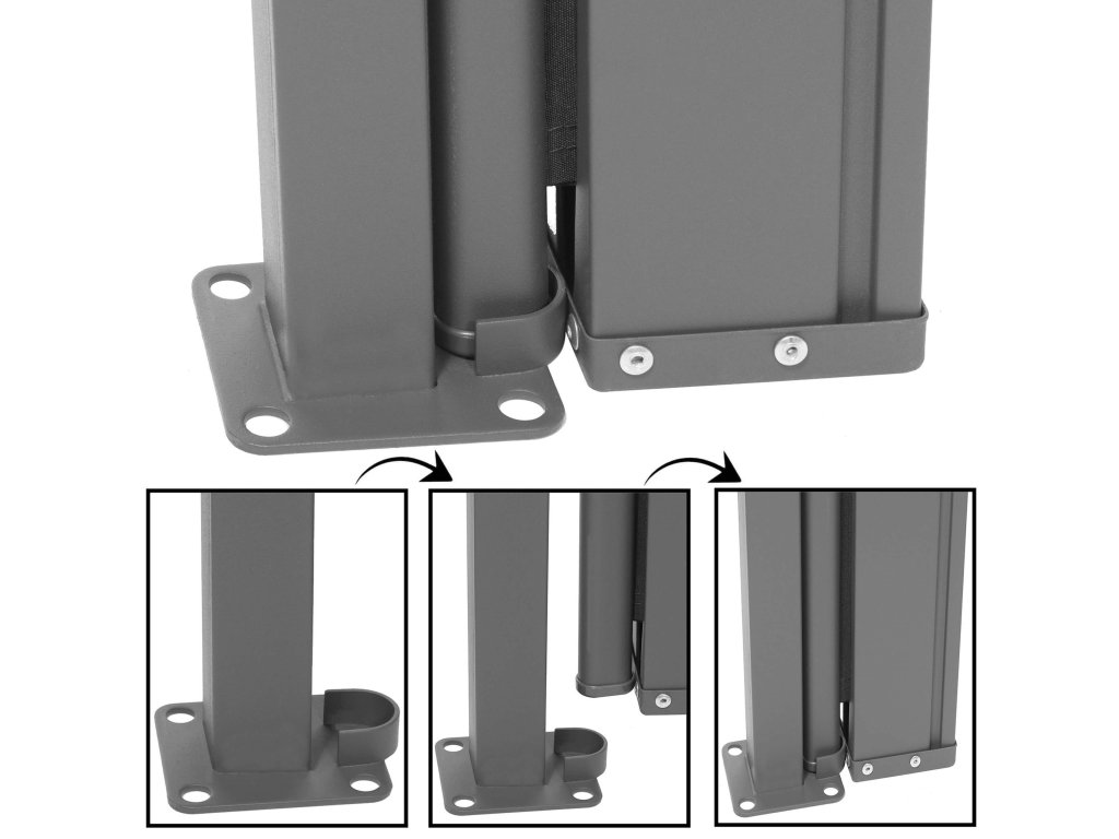 - Oceľová kazeta a stĺpik, hliníkový pásik na okraji látky