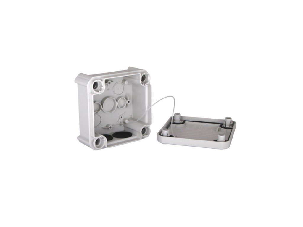 Vodotesna spojna škatla, prahotesna s hermetično zaprtim pokrovom. Namenjena je za skritje povezav kamer, UTP transformatorjev, galvaničnih separatorjev ali samostojnih zaščitnih naprav za prenapolnitev. Pokrov pritrjen na hitro demontabilne zaponke, kot tudi dodatno pritrjen z vrvico za olajšanje montaže. Znotraj se prilega tudi 12V napajalnik v standardnih dimenzijah. Škatla je združljiva s nosilcem U-BOX.