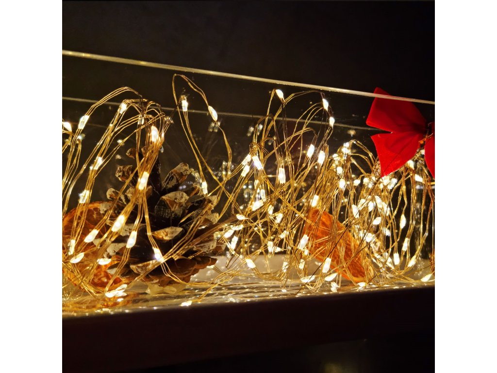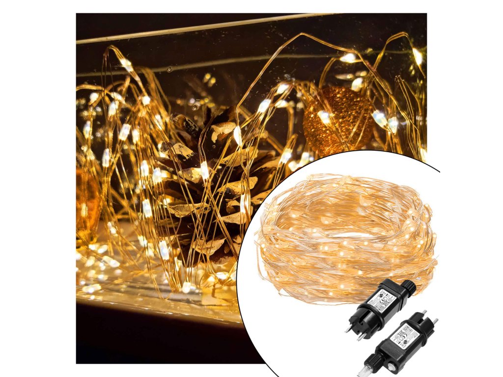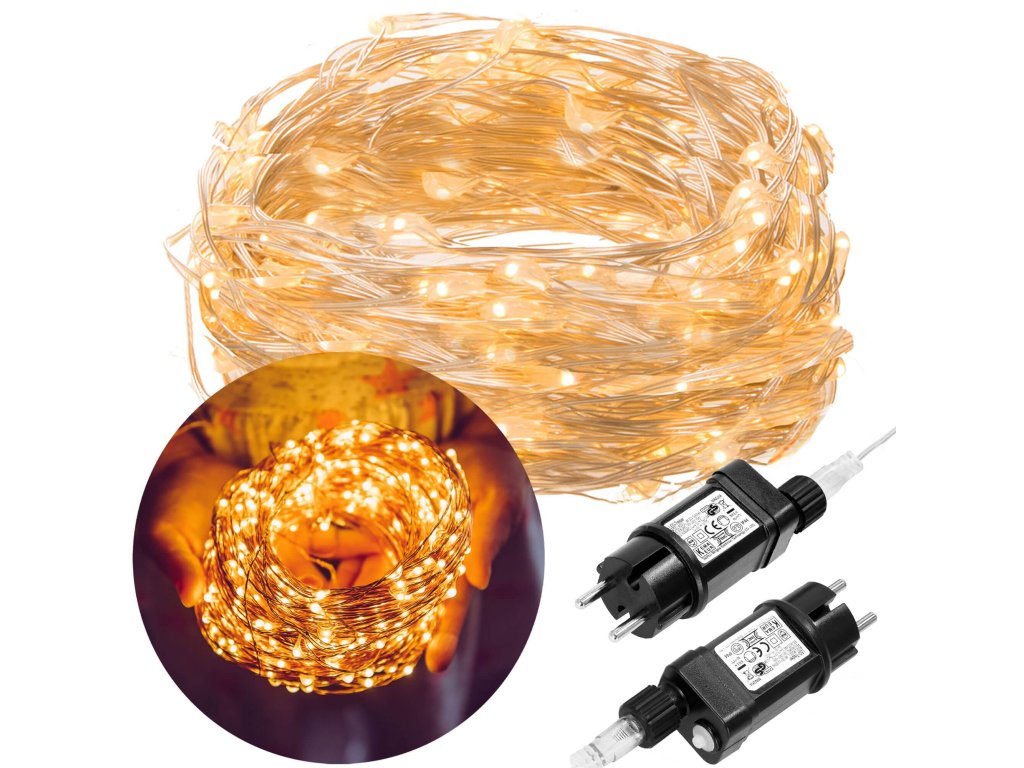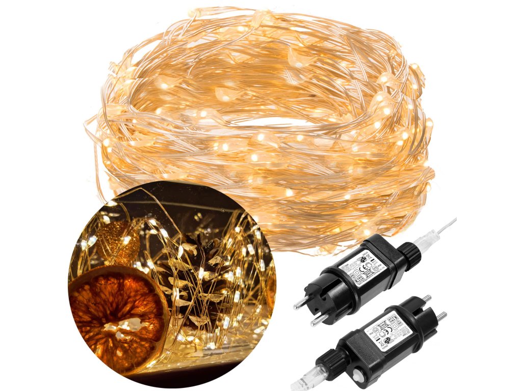 Barva: topla bela 8 funkcijski programator: kombinacija, val, sekvenca, razjasnitev, utripanje/počasno utripanje, počasno zmanjševanje, utripanje/bliskanje, neprekinjena svetloba Dolžina osvetljevalnega dela 20 m Dolžina kabla: cca 3 m "String" svetilke z 200 mikro LED diodami Žive, izrazite barve Energetsko varčne diode Napajanje z elektriko Poškodba ene diode ne prepreči delovanje sklopa Vodotesne diode - lahko se potopijo v vodo - brez napajanja Svetilke na trpežnih bakrenih žicah srebrne barve CE certifikat Razred zaščite IP44 Zunanja in notranja uporabaAdditional parameters
