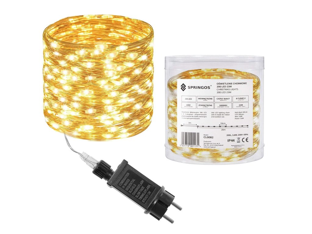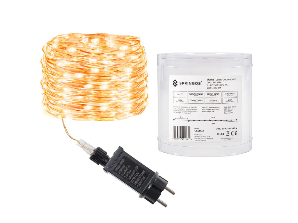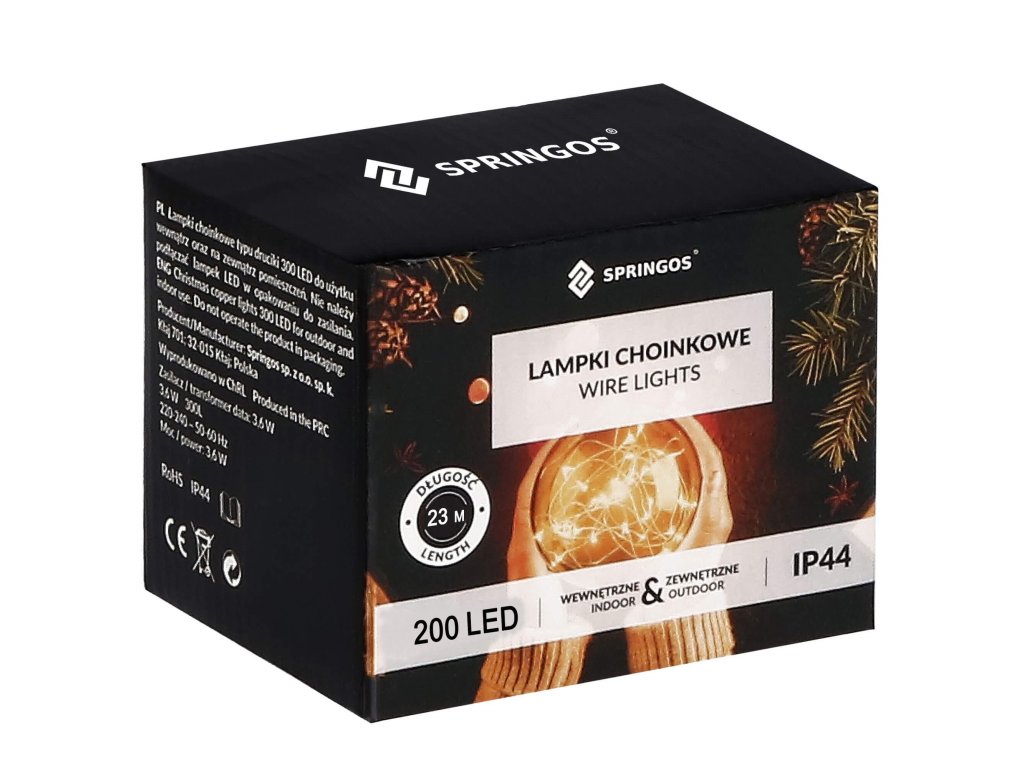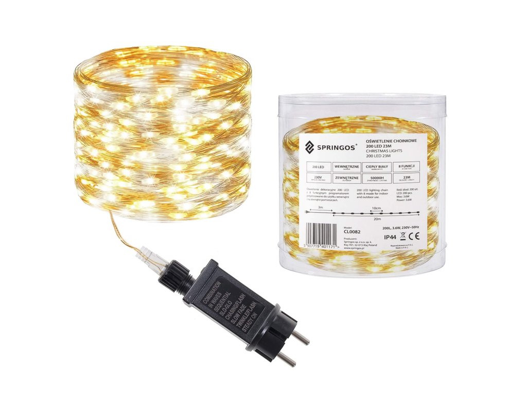 Barva: topla bela 8 funkcijski programator: kombinacija, val, sekvenca, razjasnitev, utripanje/počasno utripanje, počasno zmanjševanje, utripanje/bliskanje, neprekinjena svetloba Dolžina osvetljevalnega dela 20 m Dolžina kabla: cca 3 m "String" svetilke z 200 mikro LED diodami Žive, izrazite barve Energetsko varčne diode Napajanje z elektriko Poškodba ene diode ne prepreči delovanje sklopa Vodotesne diode - lahko se potopijo v vodo - brez napajanja Svetilke na trpežnih bakrenih žicah srebrne barve CE certifikat Razred zaščite IP44 Zunanja in notranja uporabaAdditional parameters