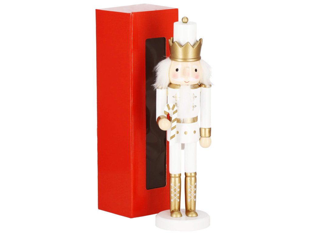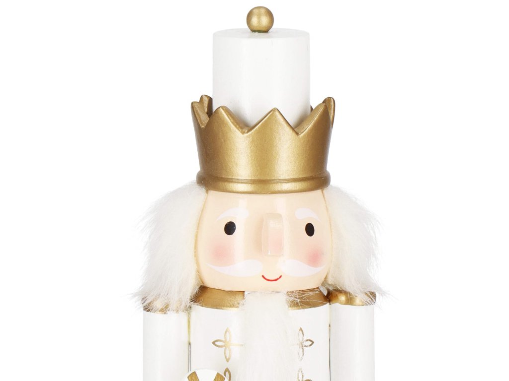 - Elementi konstrukcije: bela kapa z zlato krono, belo-zlato oblačilo, zlate čevlje, obraz z očmi in brki, štrleči nos, sivi lasje in brada, odprtina za oreh v ustih, ki se odpre z dvigom vzvoda zadaj, v roki lizika Poleg tega: čudovit dizajn