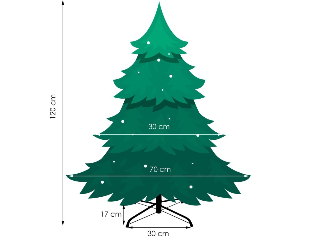 Razpon odvisno od razporeditve vej božičnega drevesa je 70 cm