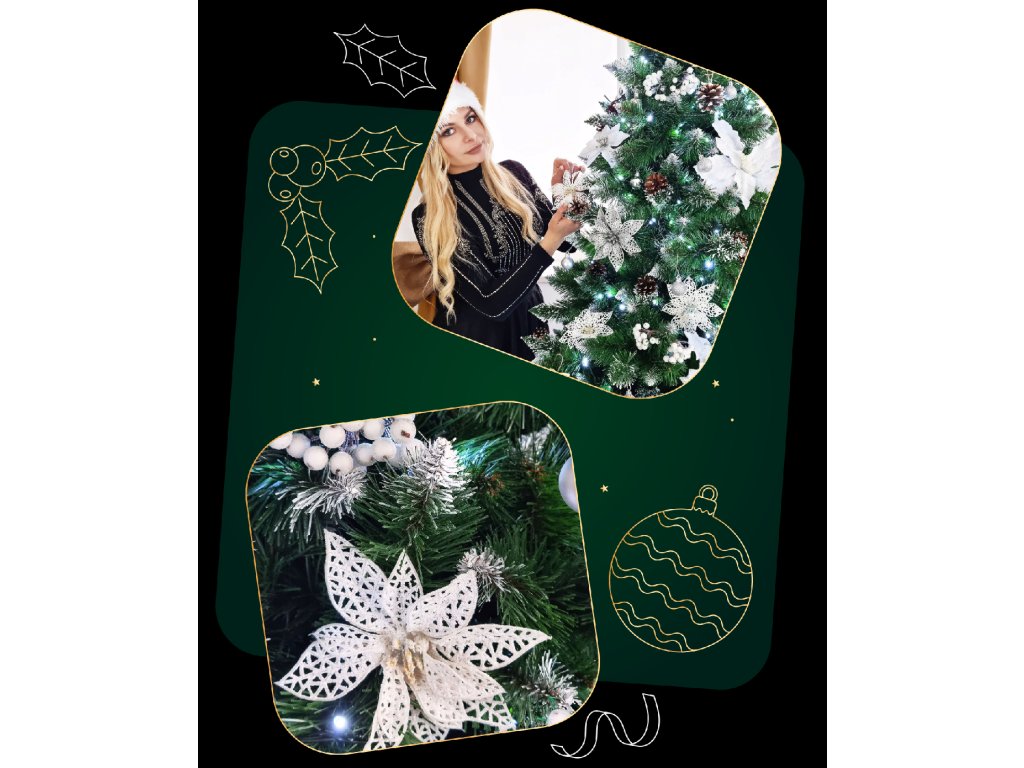 - Barva iglic: zelena + bela barva folije na izbranih konicah vej + storži