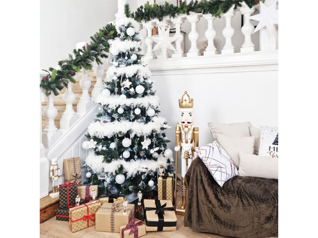 - Folija z bleščečim mrazom in naravnimi storži na izbrane konce vej