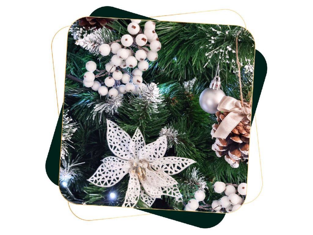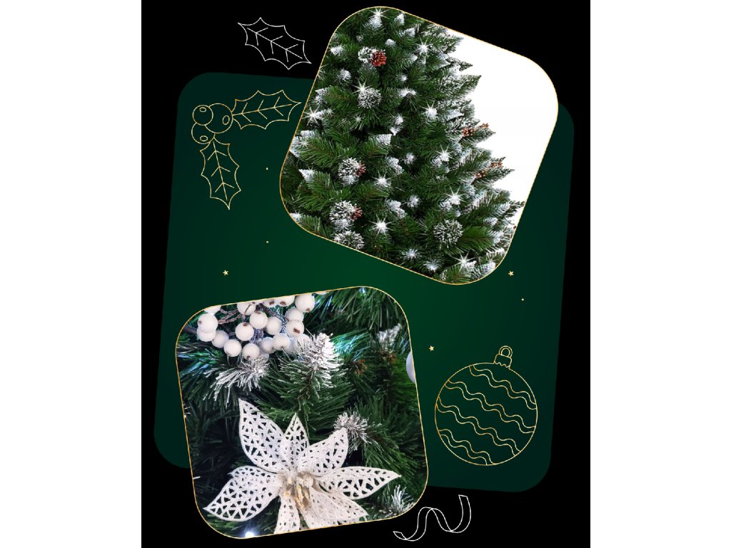 Poleg tega: naravne storži, mat učinek na vejah (beli del, bele bleščice)