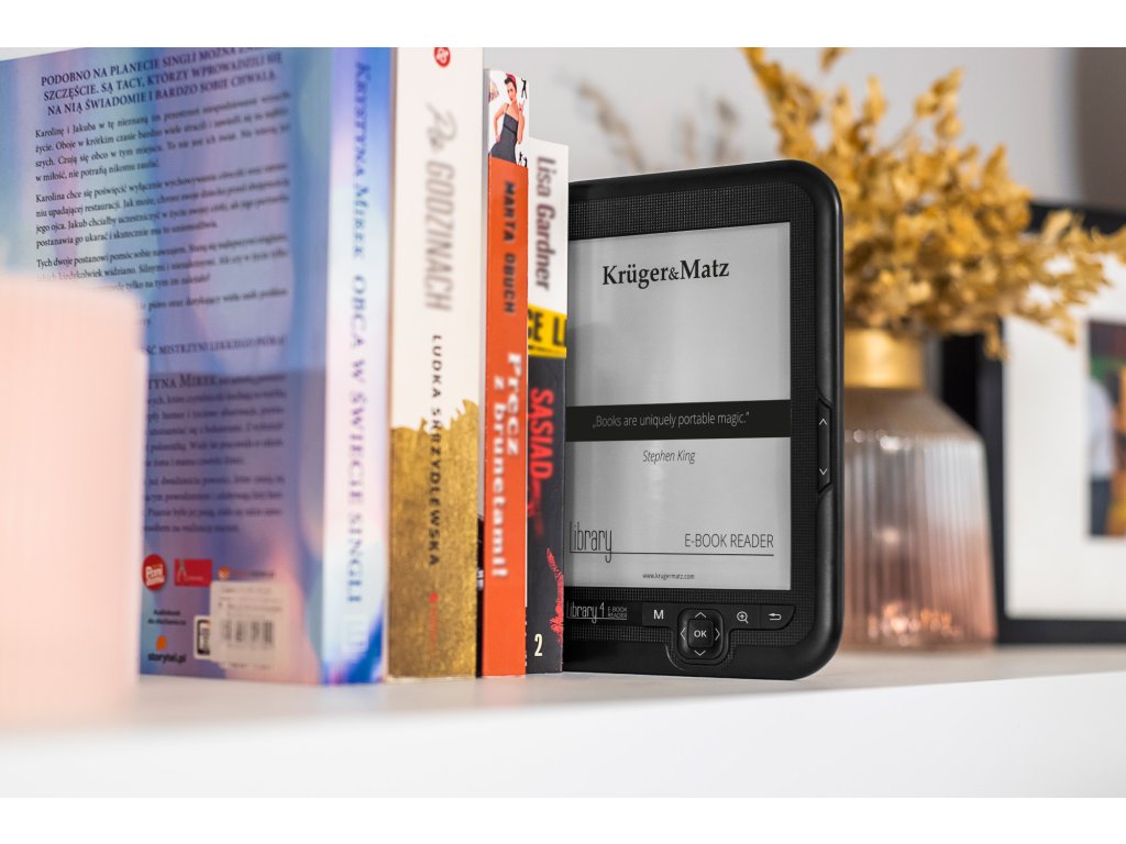 Ne veste, kateri e-bralnik izbrati? Odlična izbira bo Kruger&Matz Library 4. Ima matrico E-ink Carta, ki ne samo da posnema videz običajne knjige, ampak zagotavlja tudi višji kontrast in odpravlja potrebo po pogostem osveževanju zaslona. Zaradi nočnega načina bralnik omogoča tudi udobno branje po mraku.