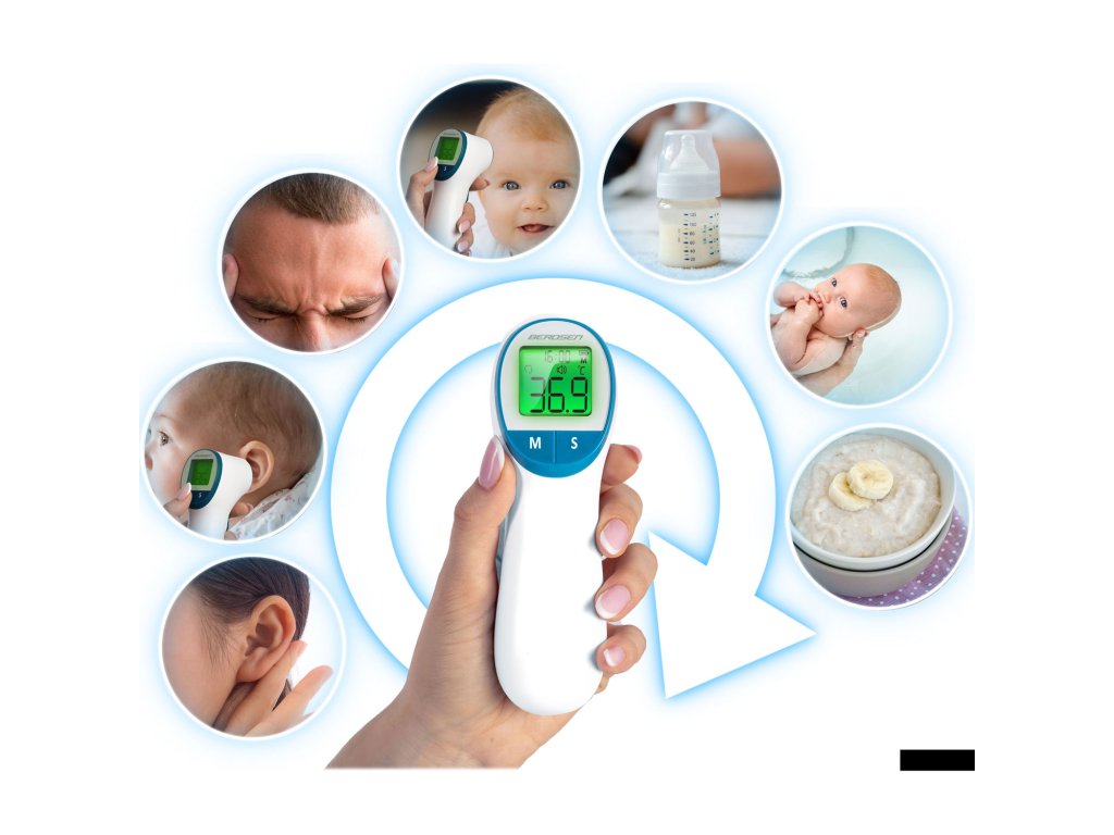 Univerzalnost: Brezkontaktni termometri se lahko uporabljajo ne le za merjenje telesne temperature, temveč tudi za preverjanje temperature površin, npr. mleka v steklenici, vode za kopanje ali hrane.