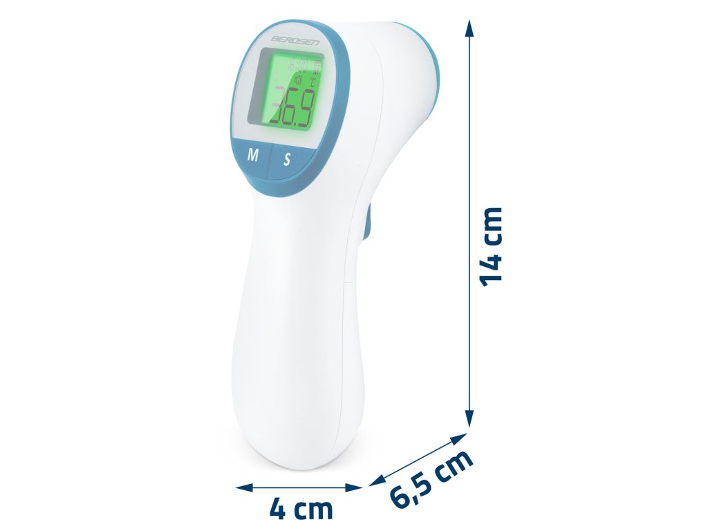 - Hitrost in udobje merjenja: Brezkontaktni termometri omogočajo hitro preverjanje temperature brez potrebe po stiku s telesom, kar je udobno zlasti pri majhnih otrocih in starejših ljudeh.