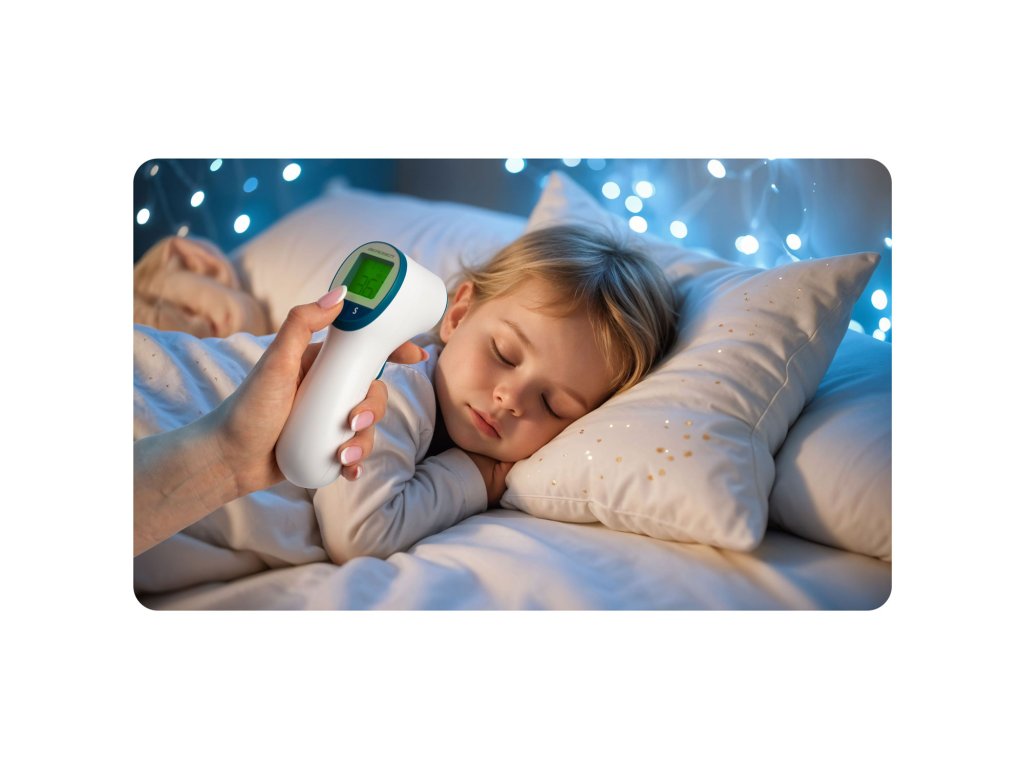 Skrbite za svoje zdravje in zdravje svojih bližnjih:Brezkontaktno merjenje je varno in udobno za otroke, celo med spanjem, brez tveganja, da jih zbudite.