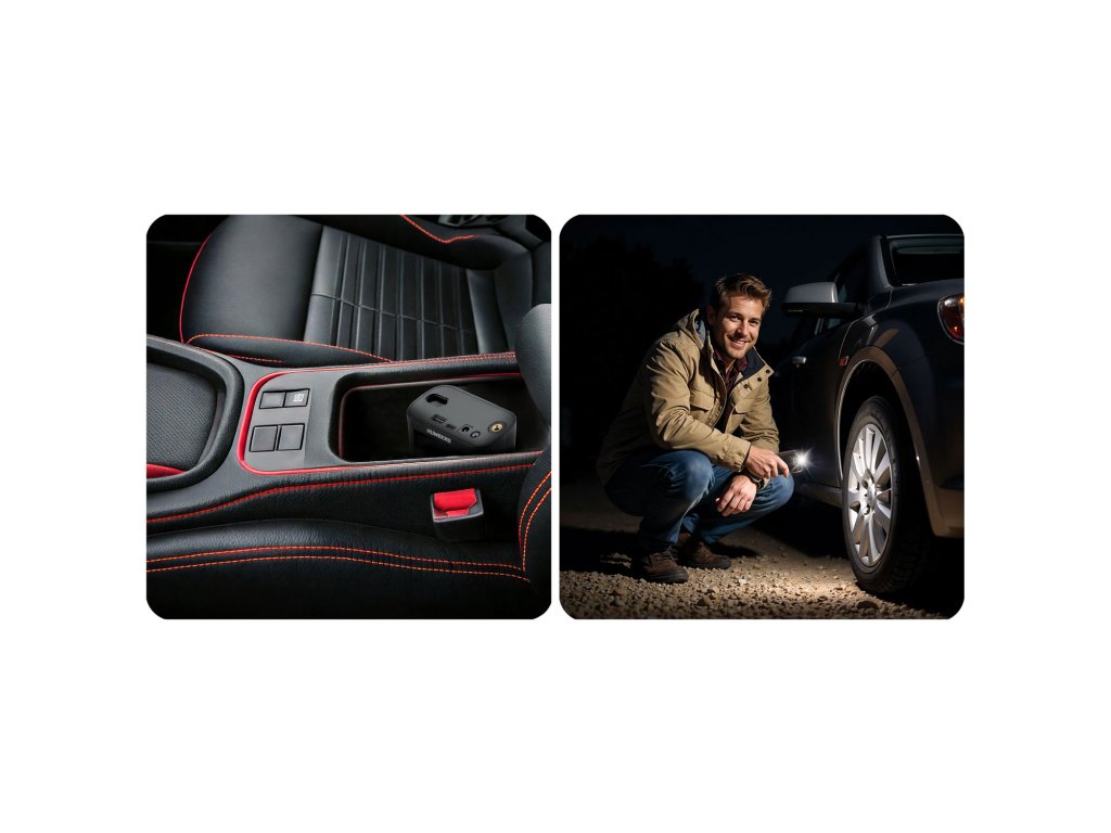 - Prenosljiv, brezžični in enostaven za uporabo – idealen za vsakodnevno uporabo, na poti in v garaži. Poleg tega vgrajena luč naredi odlično izbiro tudi v nujnih situacijah po temi.