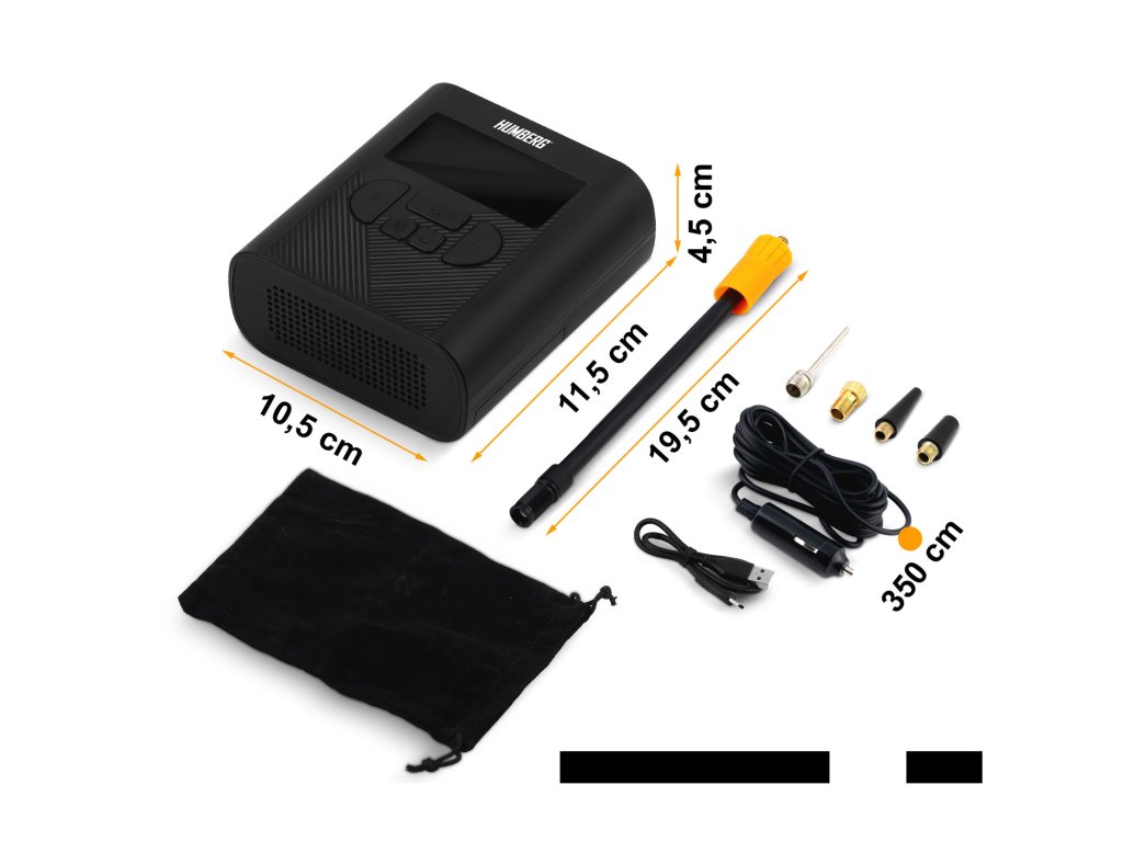 - približno 35 min Set: zračna cev, igla za žogo, presta nastavek, USB-C kabel, avtomobilski polnilec (3,5 m), ohišje