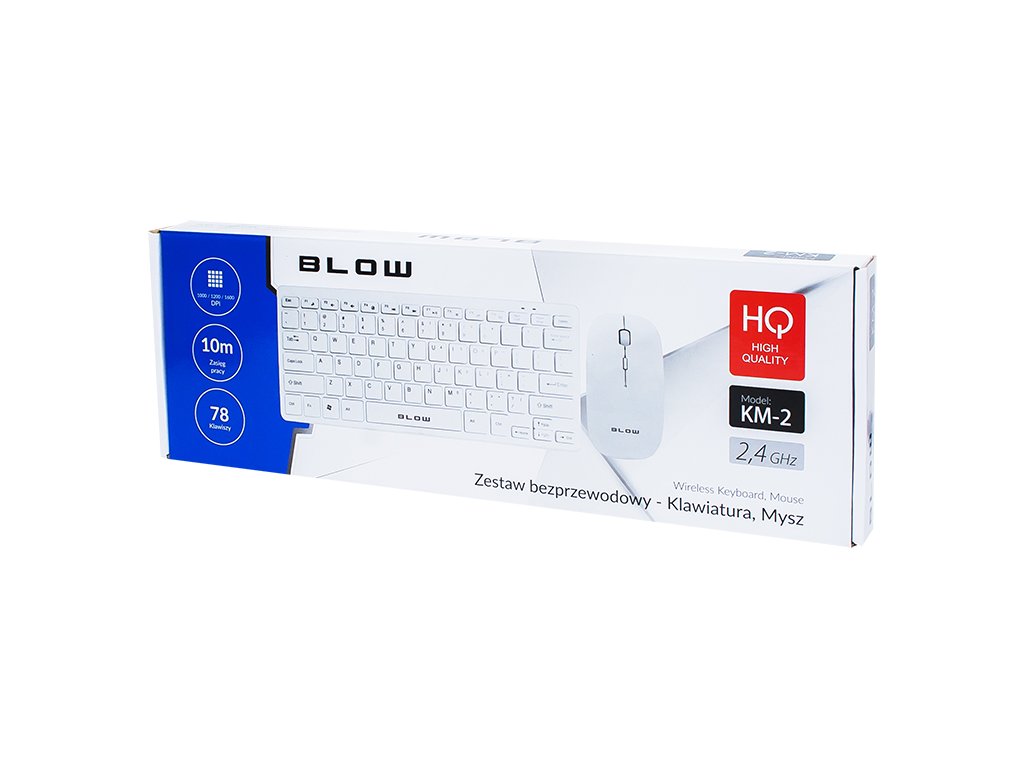 Komplet znamke BLOW, ki je sestavljen iz brezžične tipkovnice in miške v različici SLIM. Naprave se povezujejo z prenosnikom ali računalnikom s pomočjo majhnega USB sprejemnika. Komplet zaznamuje preprost dizajn, udobje pri delu in enostavna uporaba.