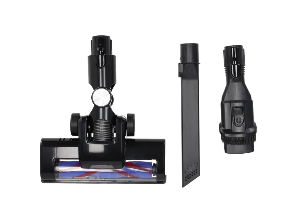 Poleg tega je v kompletu skupaj s sesalnikom tudi praktična delovna konica, podaljšek in kar je pomembno, nosilec za montažo na steno, ki omogoča shranjevanje sesalnika na priročen in prostor varčen način.