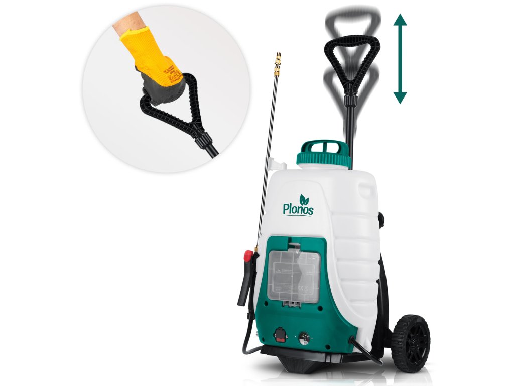 Udobno in preprosto premikanje: zahvaljujoč stabilni platformi in velikim kolesom, je premikanje s škropilnikom enostavno in hitro.