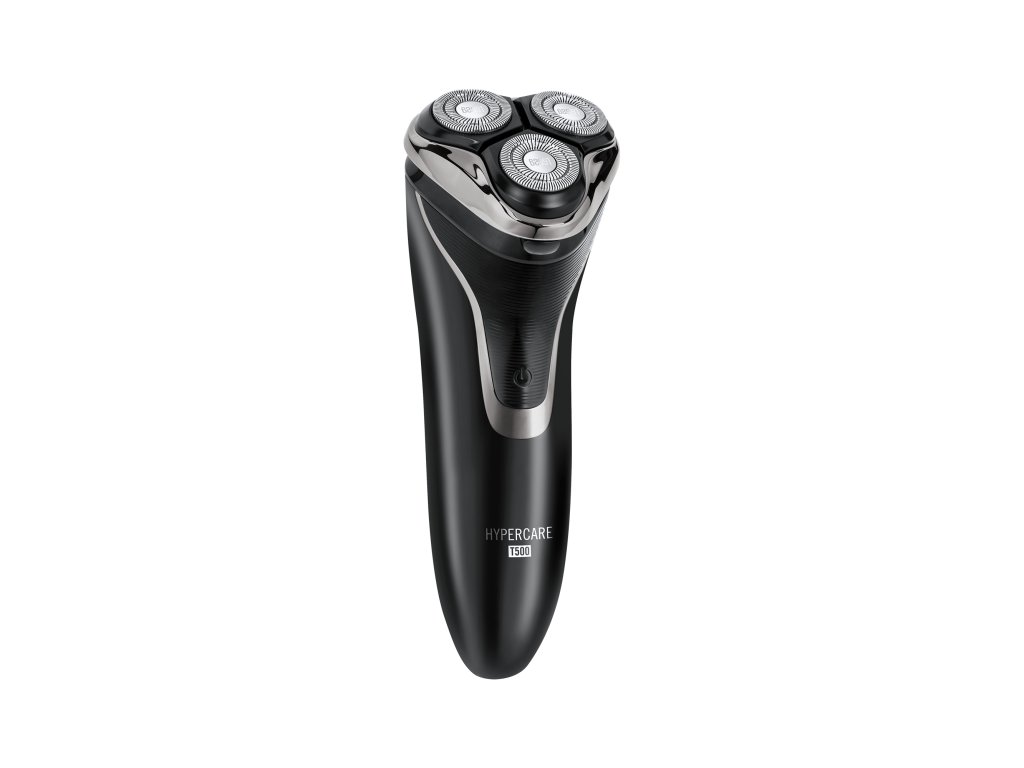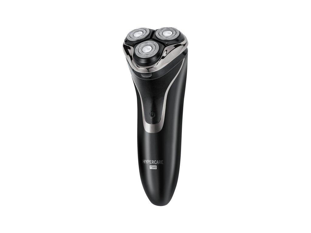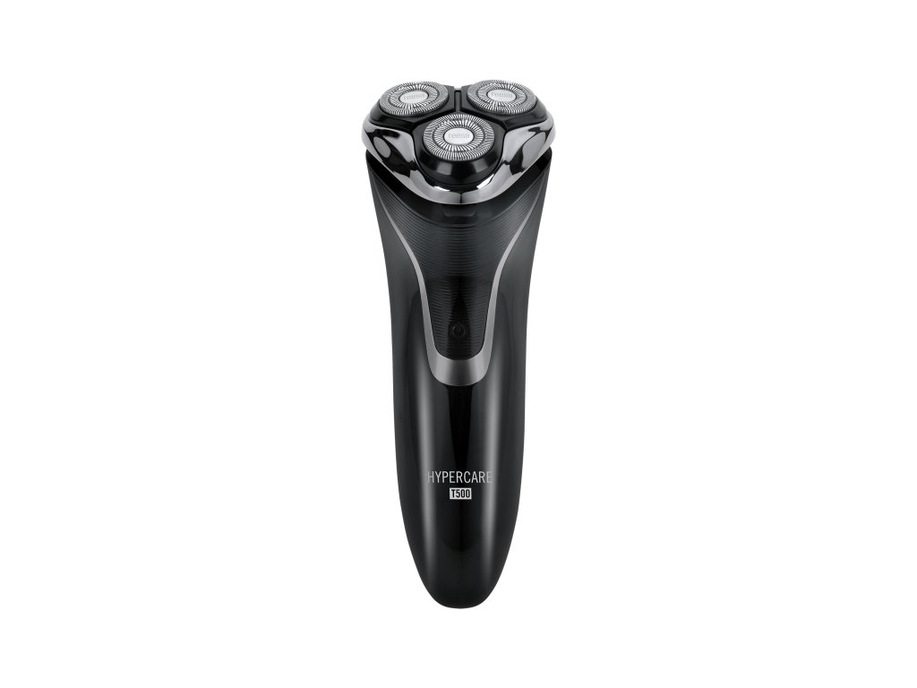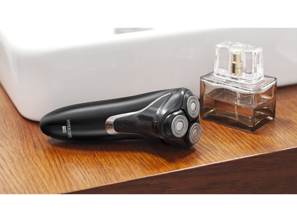 Rotacijski brivnik HYPERCARE T300 je opremljen s tremi prilagodljivimi rezili iz nerjavečega jekla. Njegova posebna zasnova in hitrost, ki doseže do 7200 vrtljajev na minuto, omogočata, da naprava brez težav obvlada vsako vrsto brade.