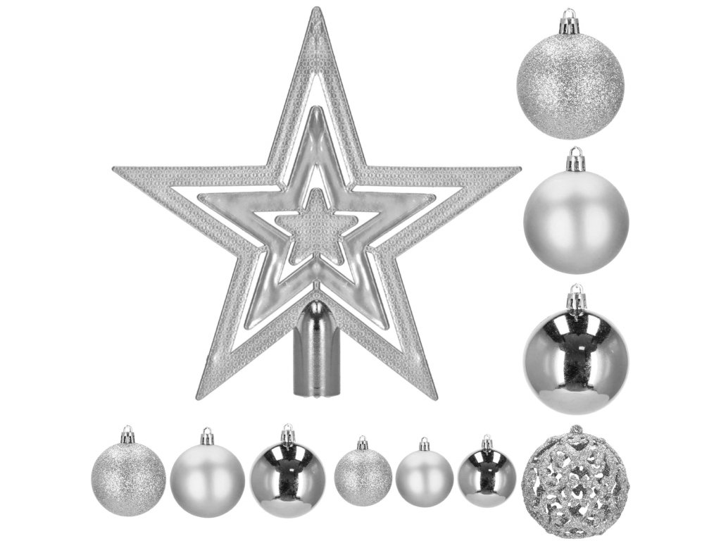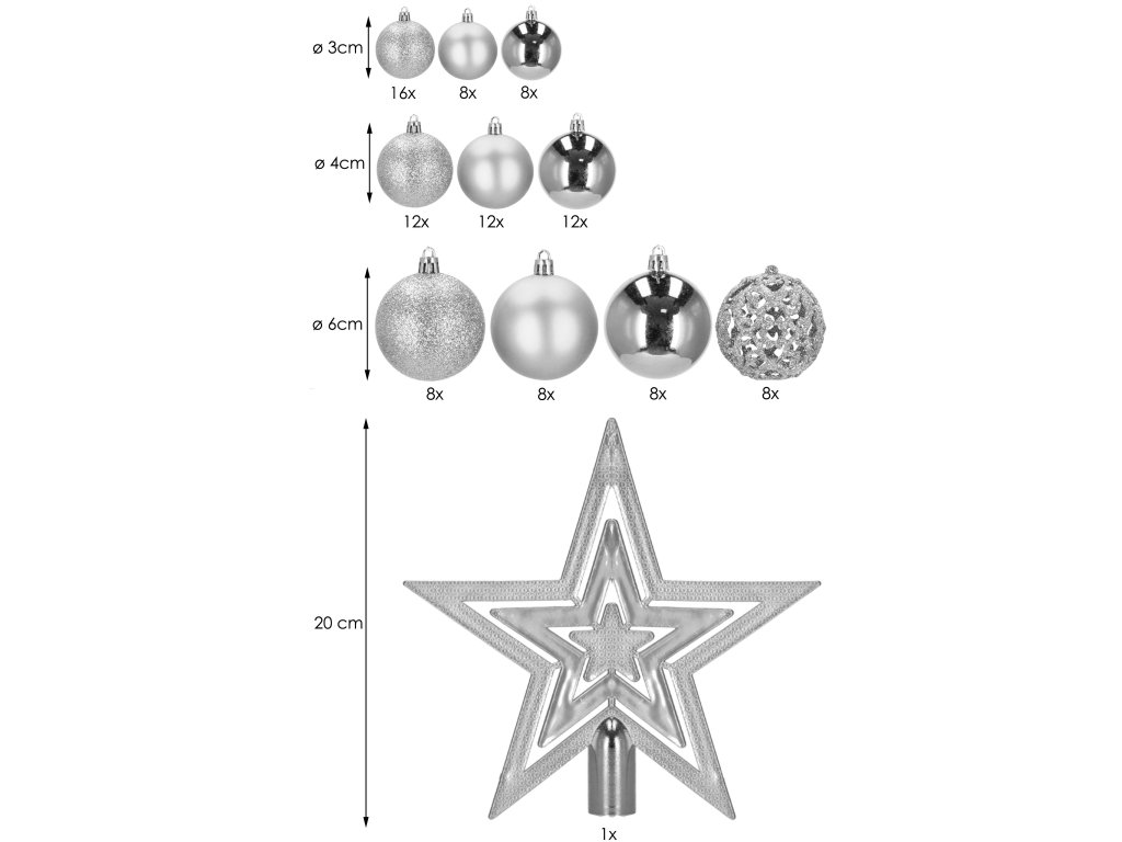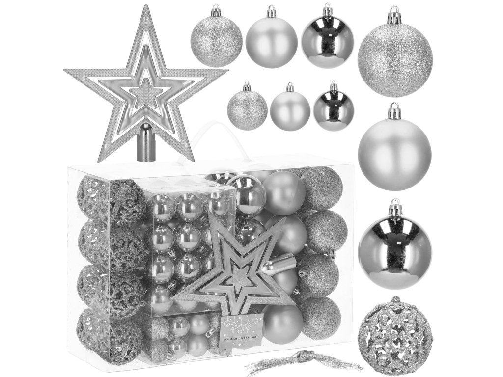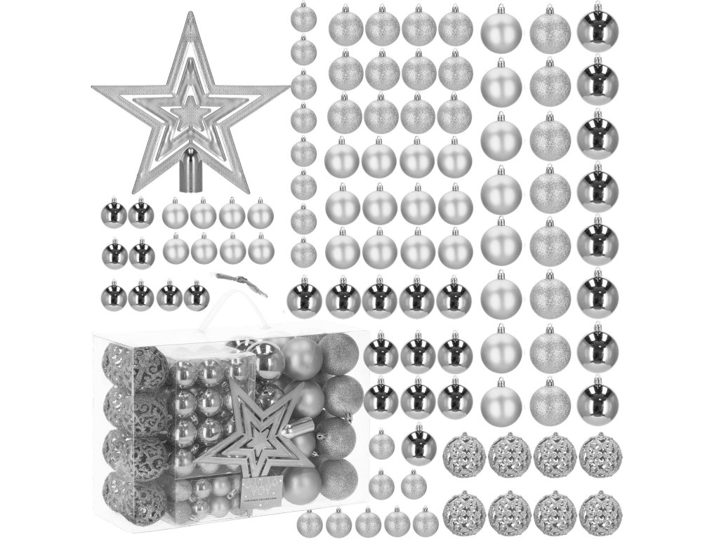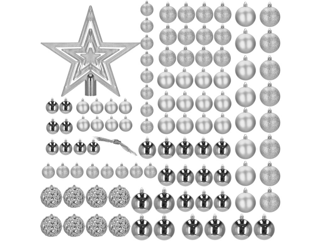 - Količina: 100 kosov kroglic + 1 zvezda za vrh drevesa