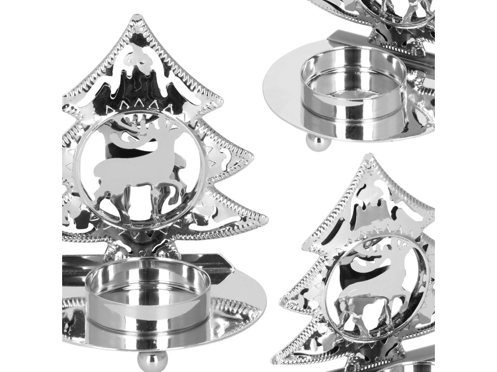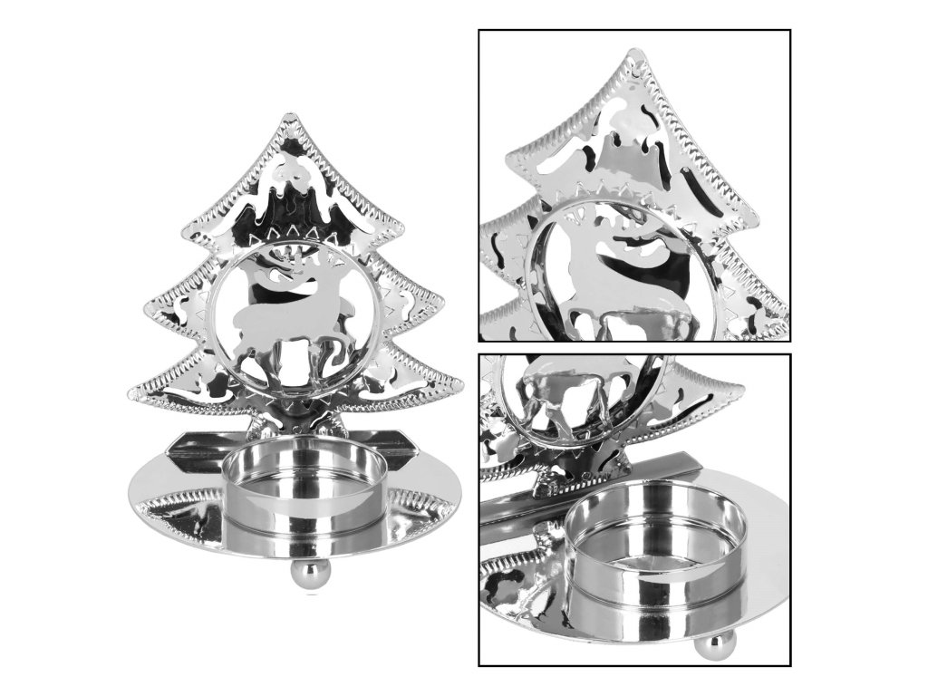 - Konstrukcijske značilnosti: božično drevo z jelenom v ozadju, osnova s prostorom za čajno svečko