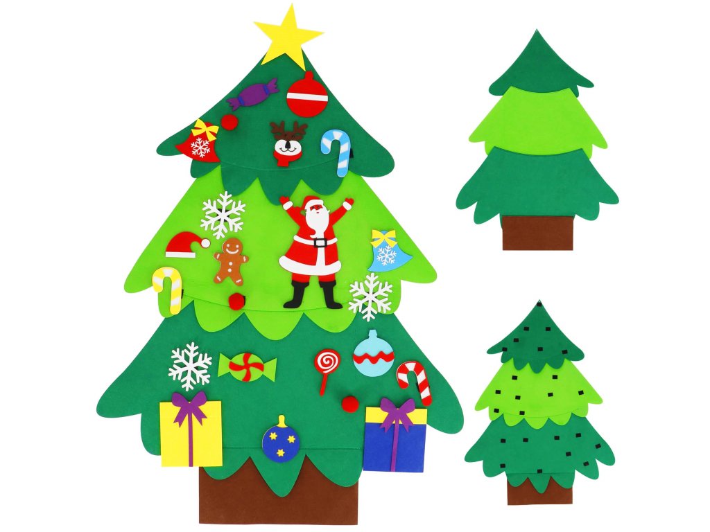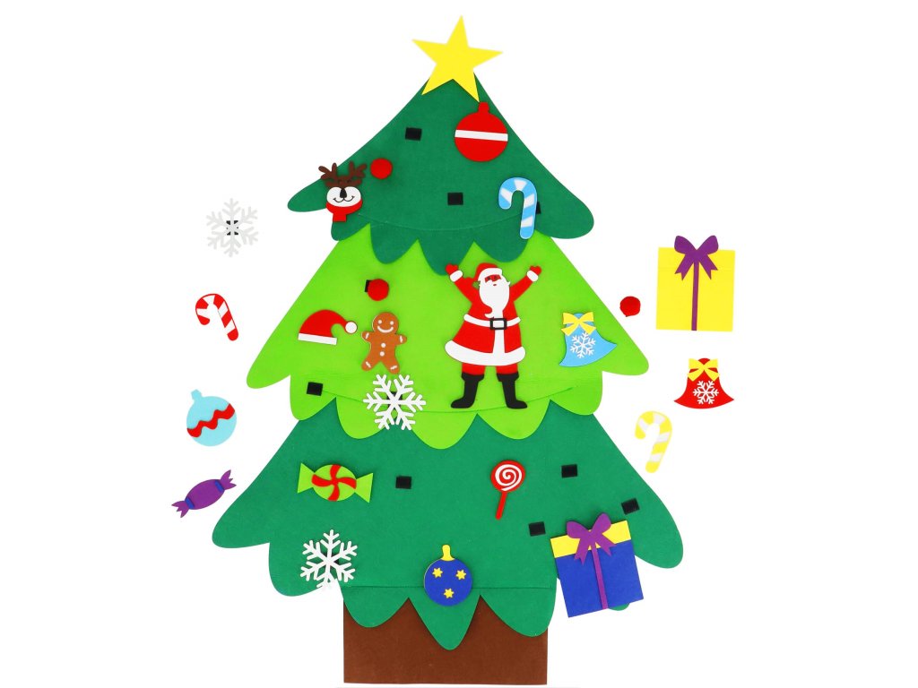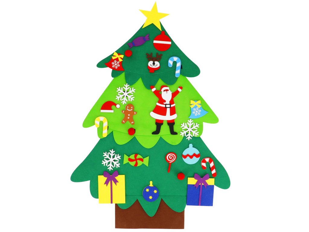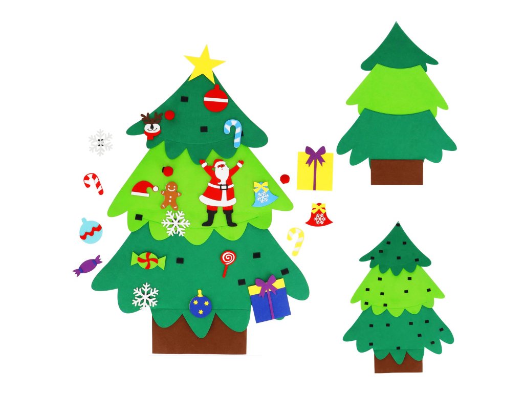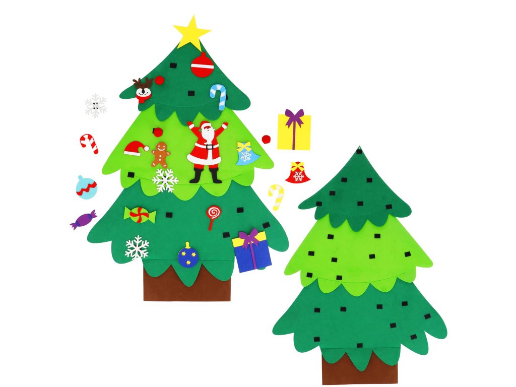 Elementi: set vsebuje filc drevo s prišitimi ježki, na katere se pritrdijo manjši filc okraski; med njimi so: lizike, darila, snežinke, rdeče kroglice, zvončki, Miklavž, kapa Miklavža, jelenova glava, kroglice, sladkarije, zvezda, figura iz medenjakov