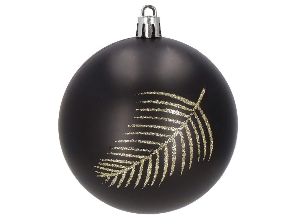 - 6x mat kroglice - črne + zlat bleščeči list - 8 cm