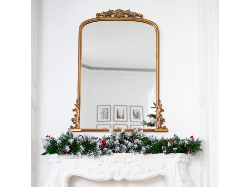 - Tip: girlanda iz umetnih iglastih vejic, zasnežena, z okraski