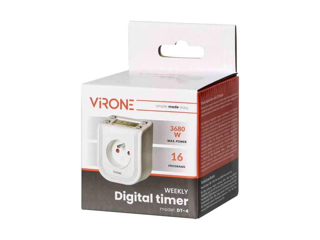 - Parametri in zmogljivost: Časovnik z LCD zaslonom deluje pri 230V in prenese obremenitev do 3680W, kar ga naredi idealnega za večino gospodinjskih električnih naprav.