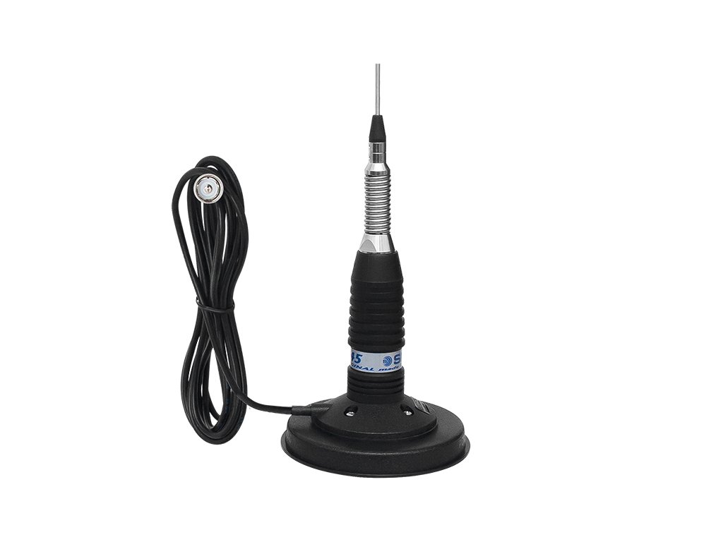 Avtomobilska antena SIRIO ML-145 z radiatorjem iz nerjavečega jekla. Antena je opremljena z zelo močnim jeklenim vzmetom in je nastavljiva s prilagajanjem dolžine bata.