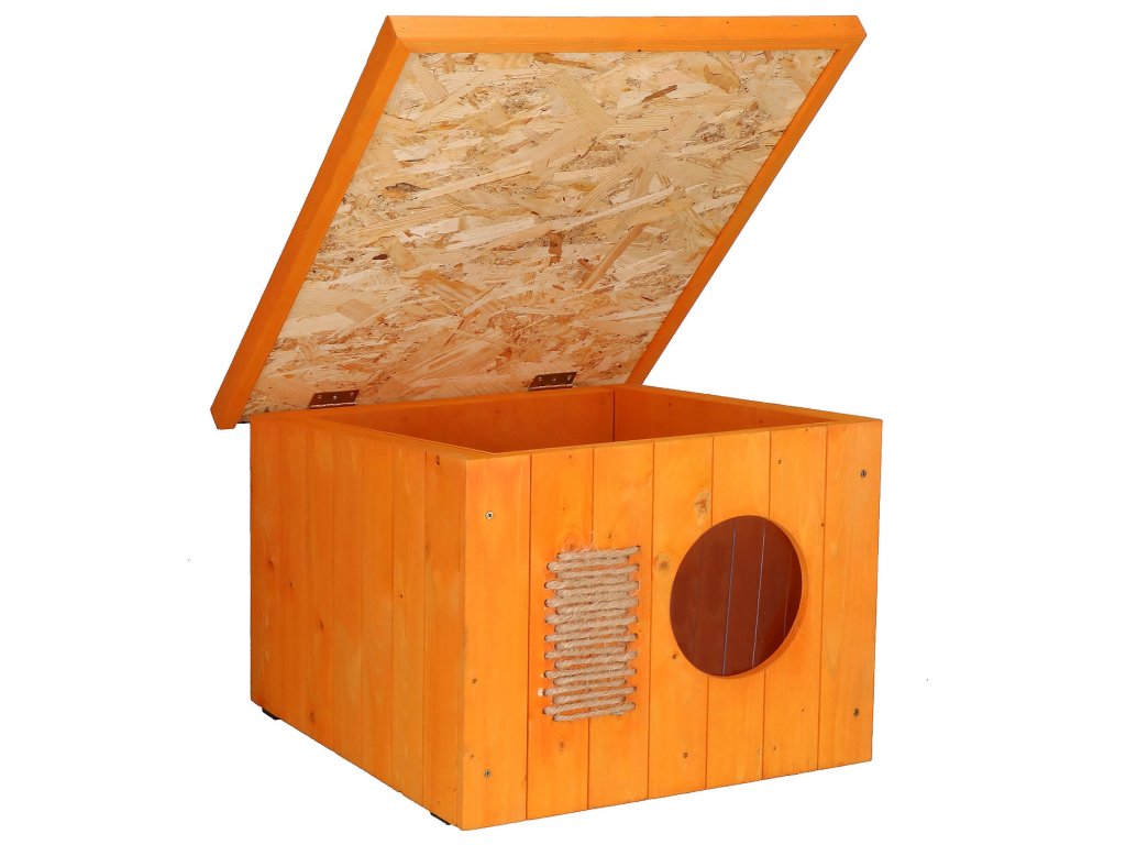 - Na prednji steni poleg vhoda je nameščen praskalnik iz vrvi