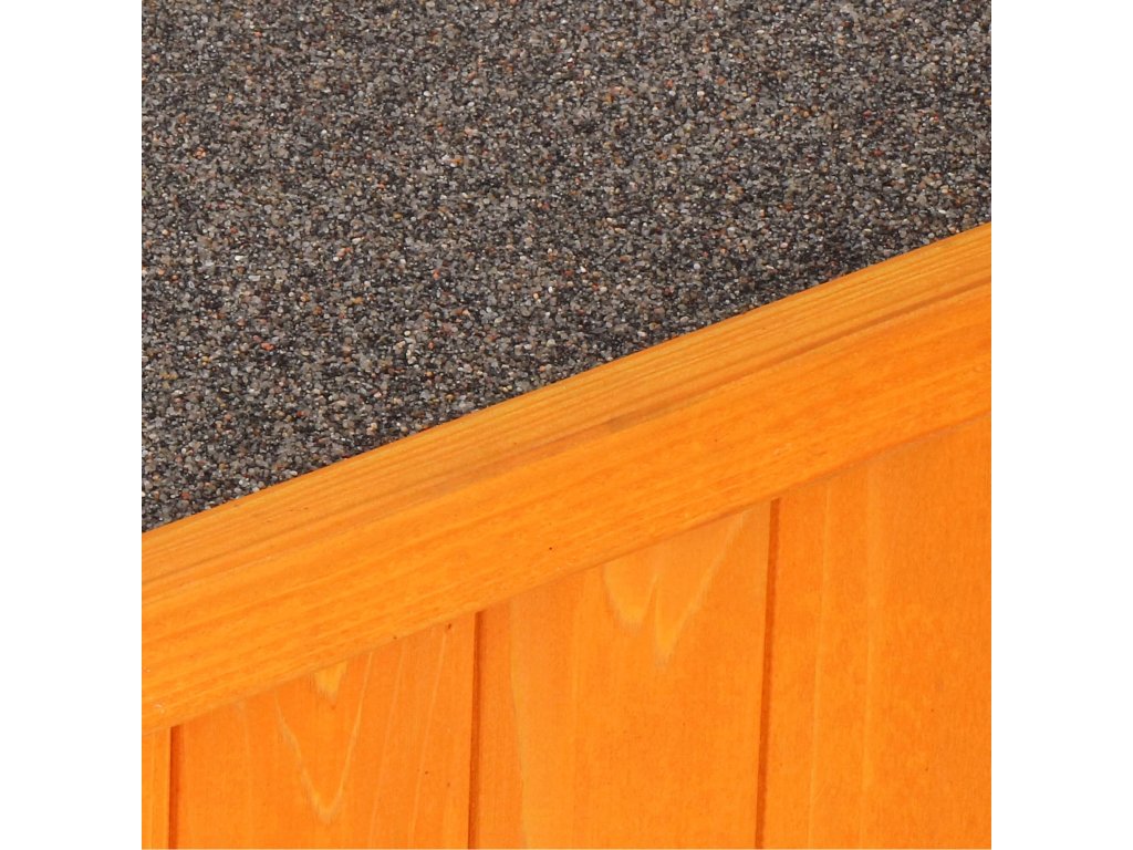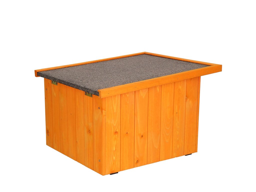 - Tla iz iverke, notranja stran strehe prav tako prekrita z iverko, stene znotraj obložene z MDF ploščami