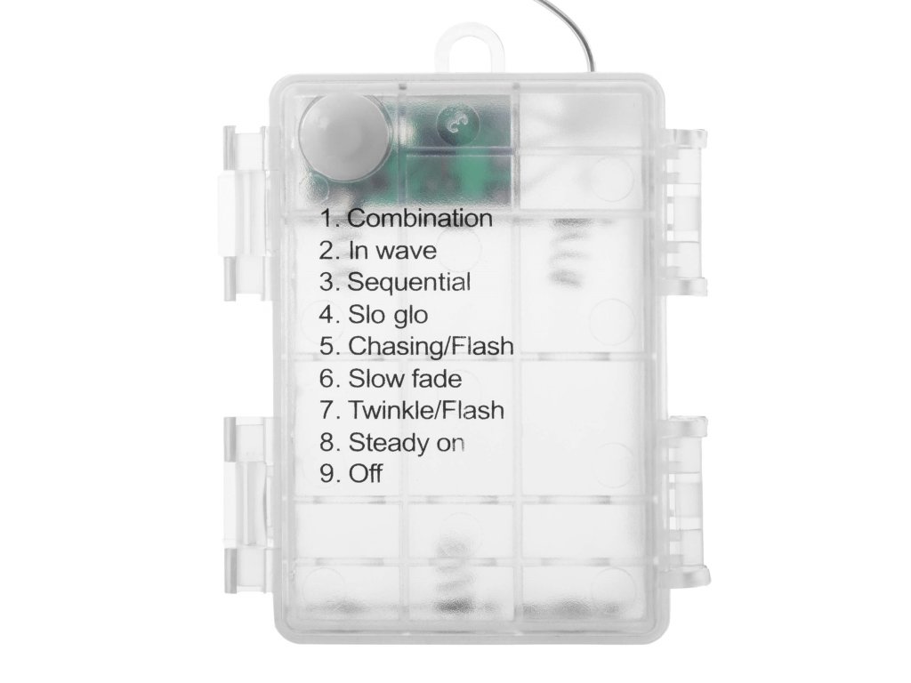- 8 svetlobnih načinov: kombinacija, svetlobni valovi, sekvenca, slo-glo, utripanje, počasna sprememba barv, utripajoče, stalna svetloba