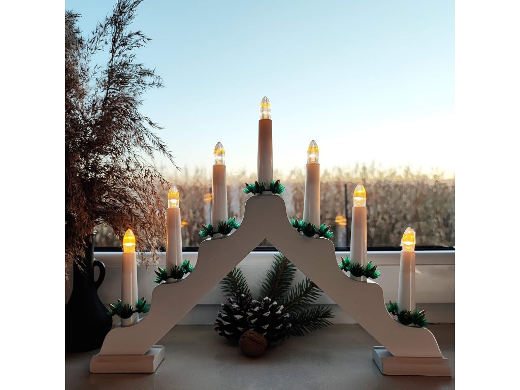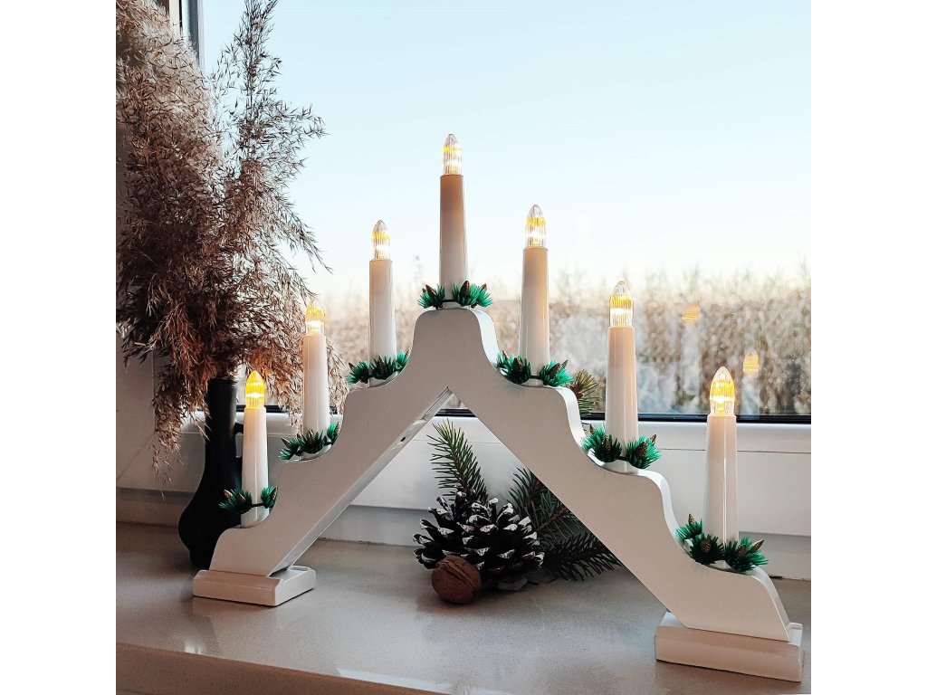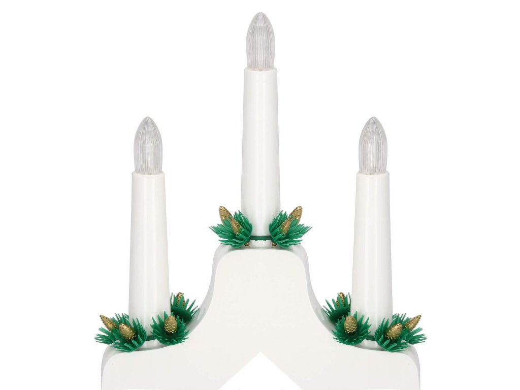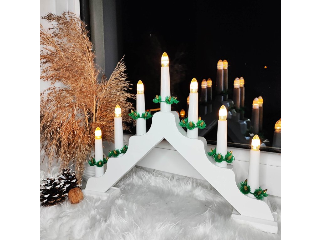 - Zeleni venčki okoli umetnih sveč s storži (5 storžev)