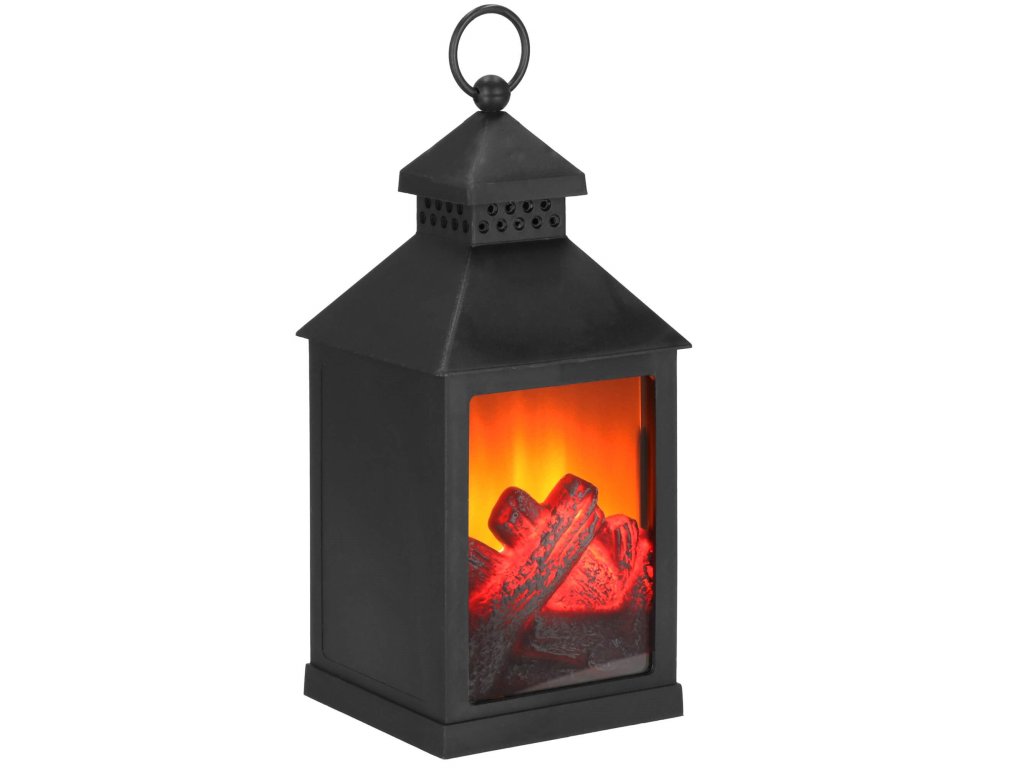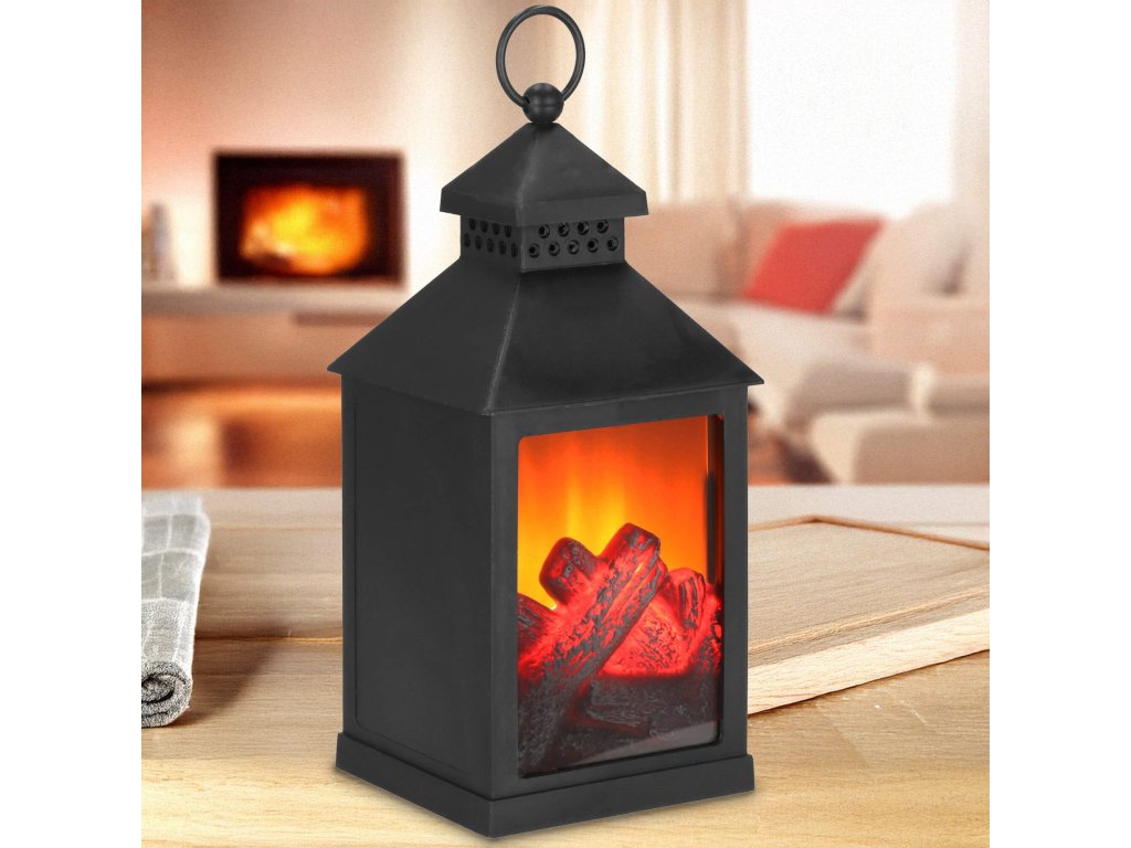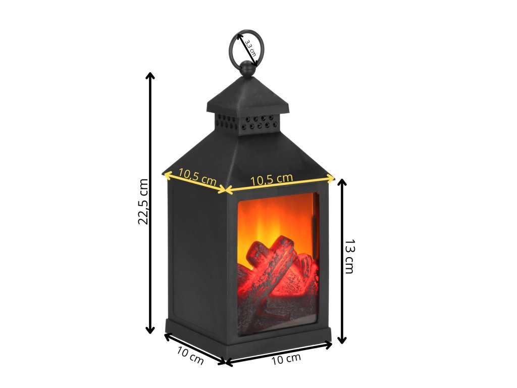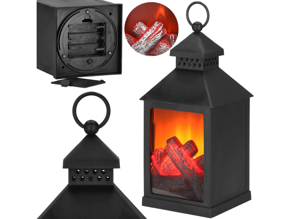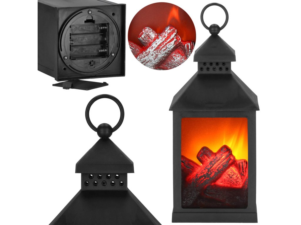 - Za prozornim steklom se nahaja imitacija gorečih lesenih polen. Ko je laterna vklopljena, ustvarja učinek žarečih lesenih polen in premikajočih se ''plamenov'' nad njimi.