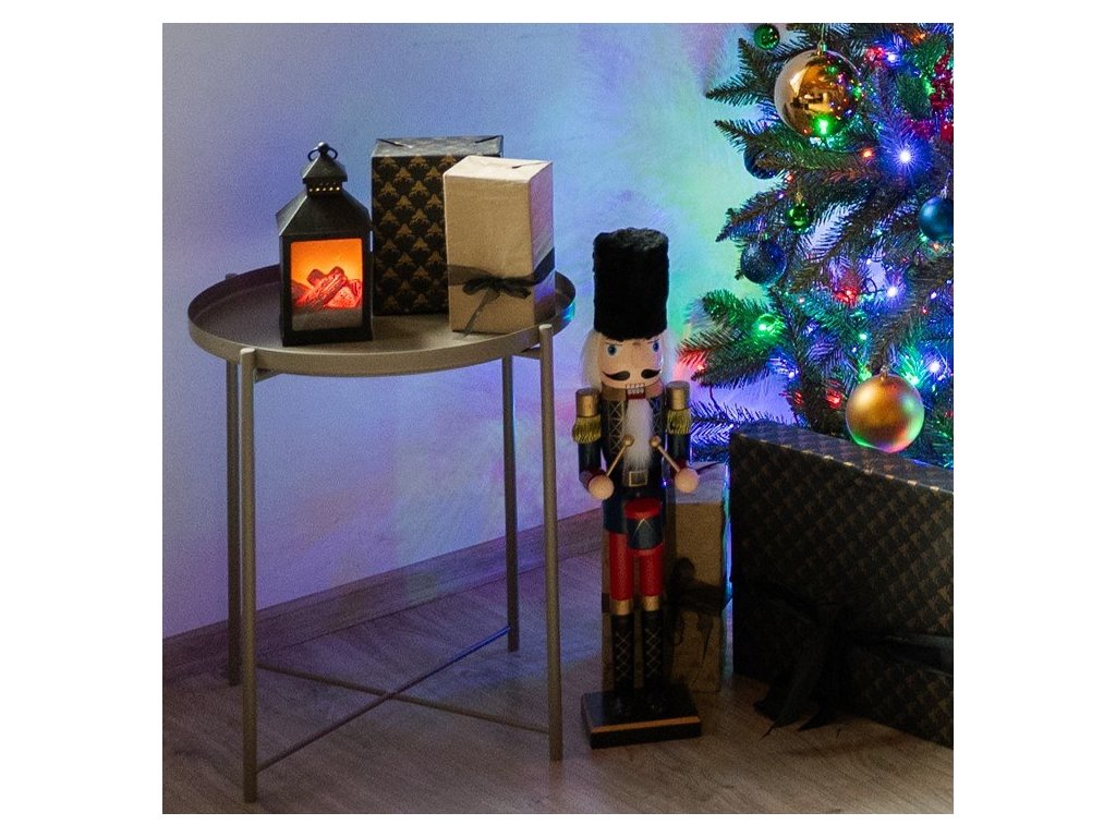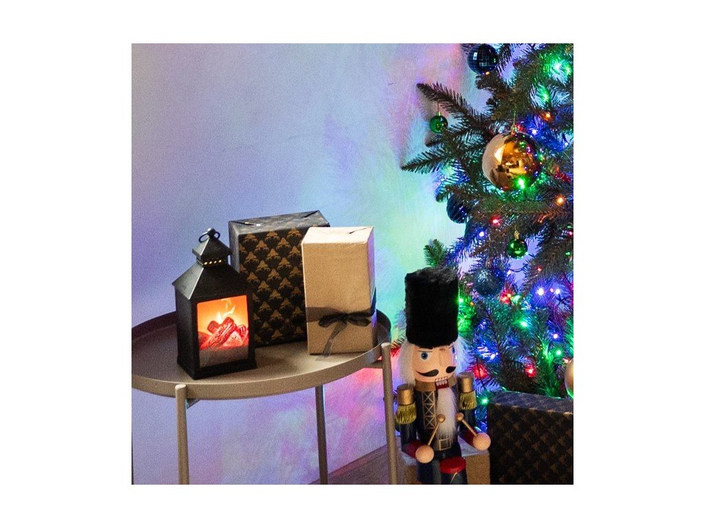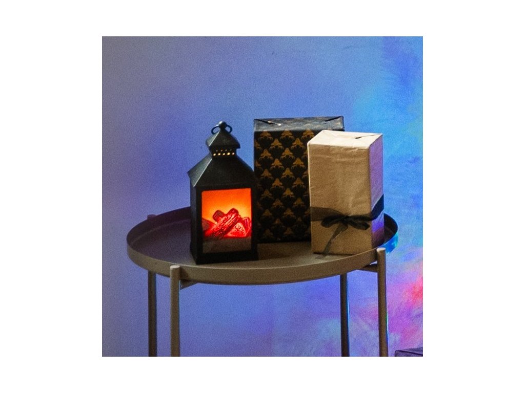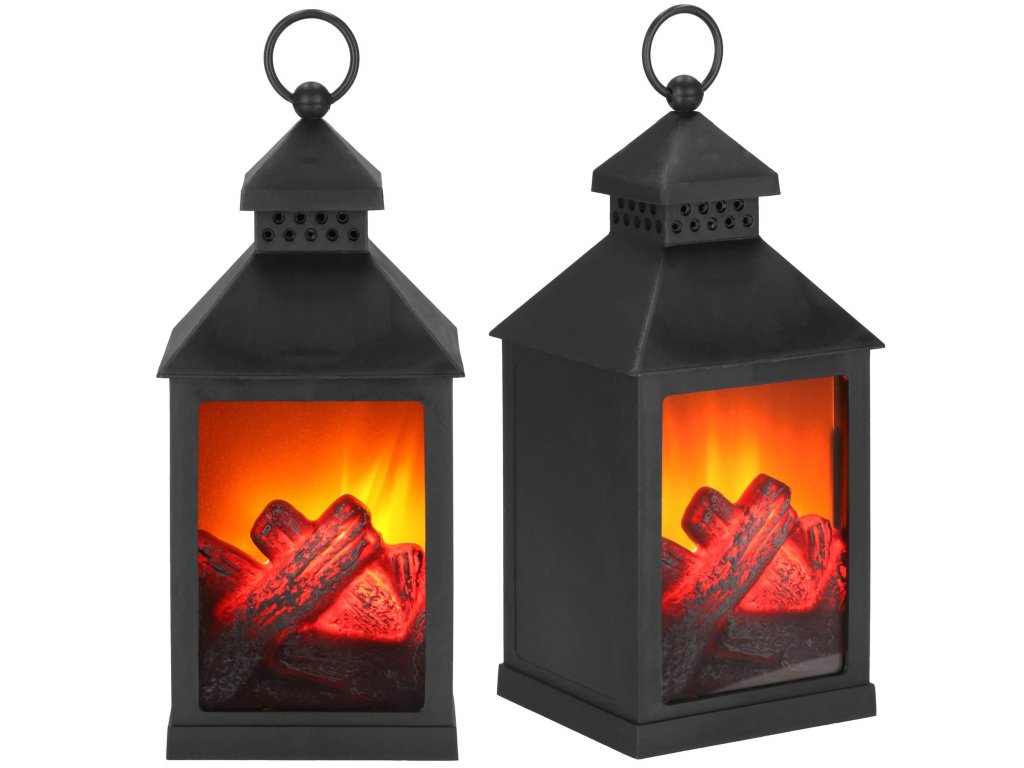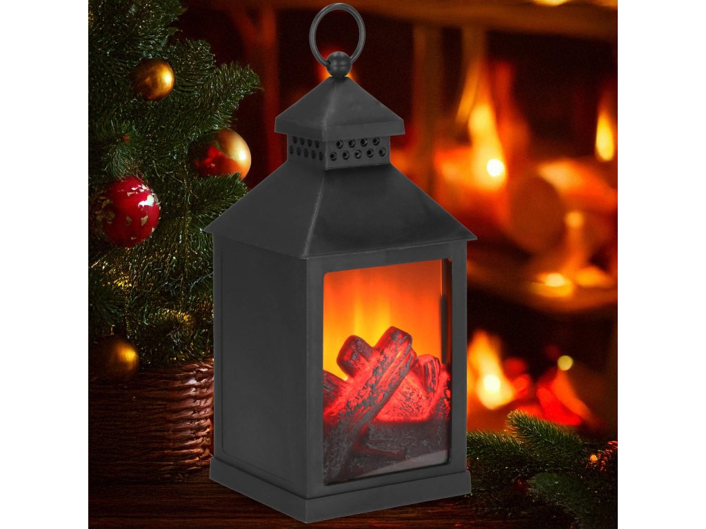 - Za prozornim steklom se nahaja imitacija gorečih lesenih polen. Ko je laterna vklopljena, ustvarja učinek žarečih lesenih polen in premikajočih se ''plamenov'' nad njimi.