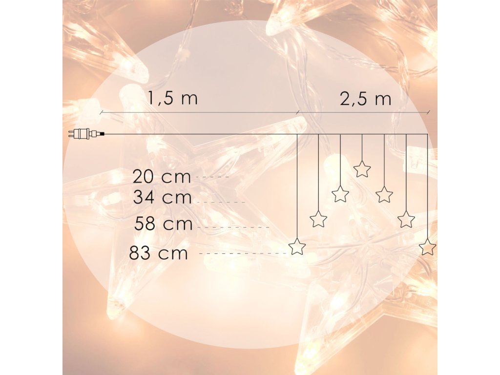 - Dolžina kabla s snežinko: 20 ; 34 ; 58 ; 83 cm