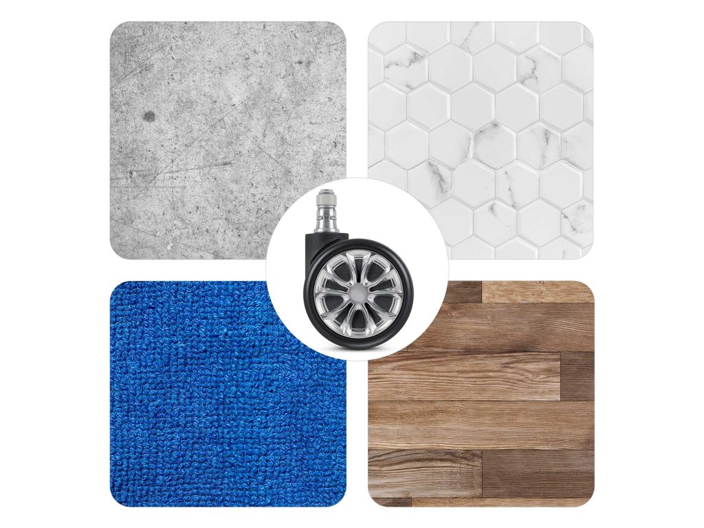 Talna površina se ne opraska! Poleg tega se kolesa premikajo zelo tiho, ne drsijo na terakoti in dobro delujejo tudi na preprogi.