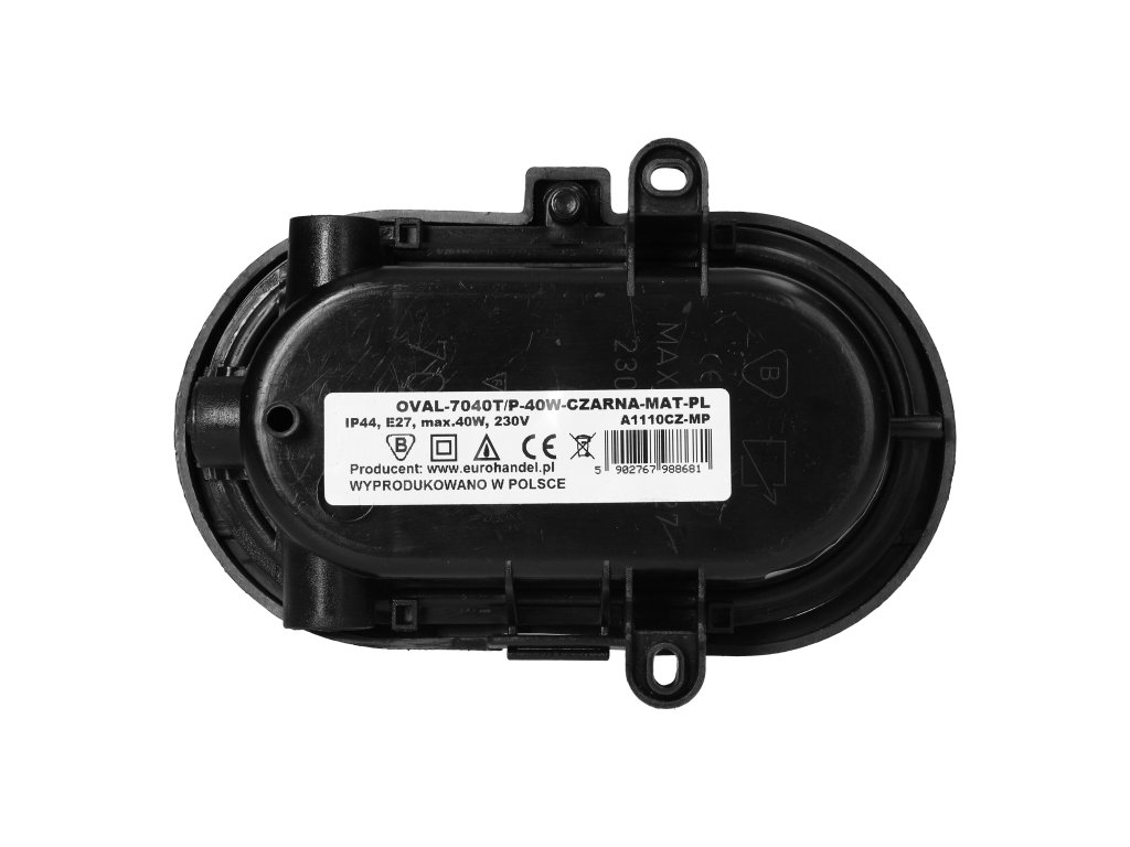 Glavne značilnosti črne zunanje svetilke OVAL 40W E27 IP44:
