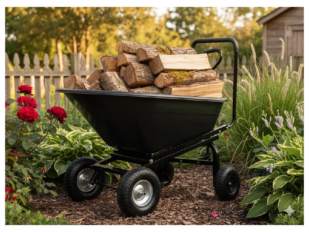 Trajna vrtna voziček s kapaciteto 160 litrov, namenjena prevozu tovorov do 300 kg. Idealno za delo v vrtu in tudi na različnih deloviščih, kot so skladišče, delavnica ali pisarna. Opremljen z vrtečim osjo, ki omogoča vrtenje do 180°, z napihljivimi pnevmatikami z dezénom in proti zdrsnjenju ročajem za udobje in varnost pri uporabi.