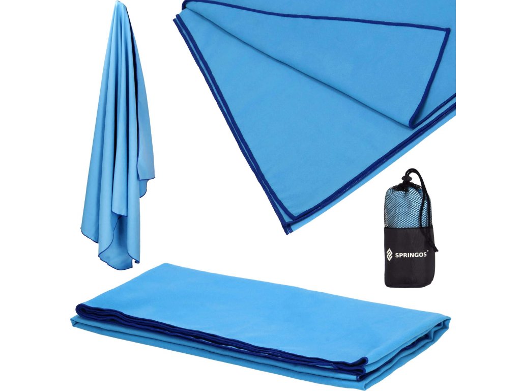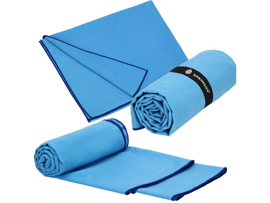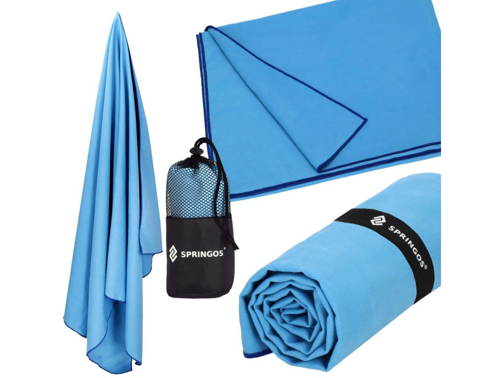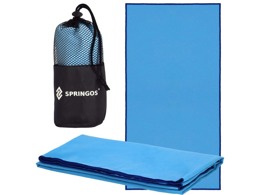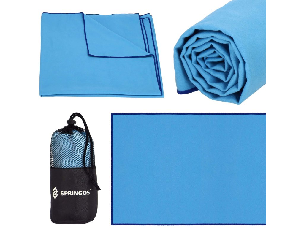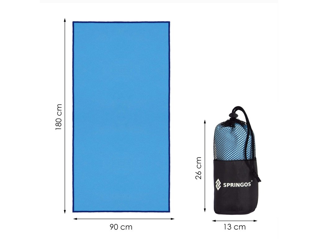 - Znamka: SpringosVelikost: 90 x 180 cmMaterial: mikrovlaknaBarva: svetlo modratemno modra overlock obrobaDimenzija v etuiju: 26 x 13 x 8 cmEtui z zatezno vrvicoPrišita elastika z logotipom Springos za vezanje brisače