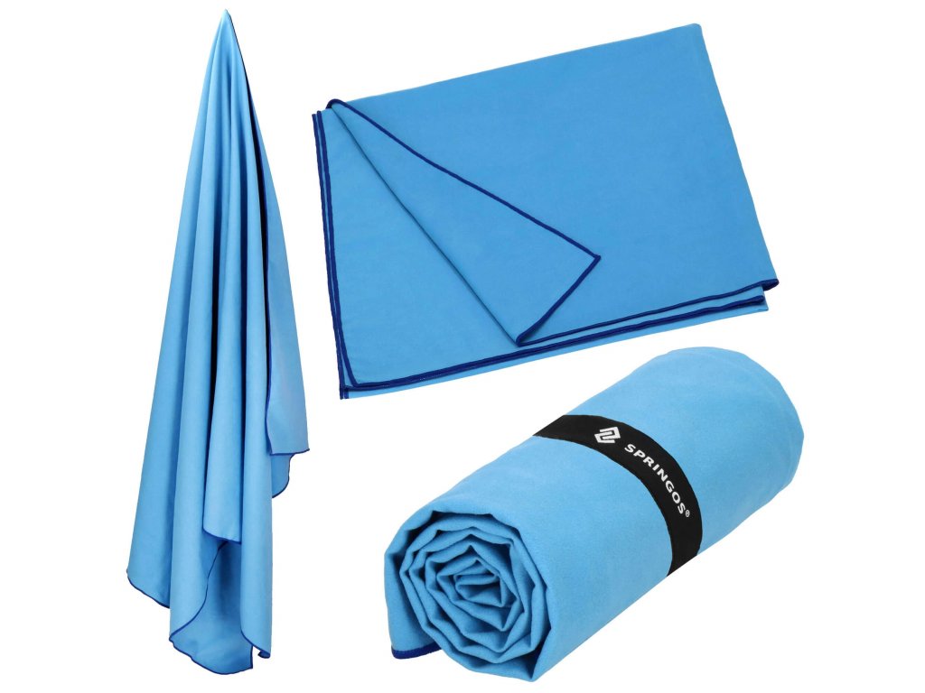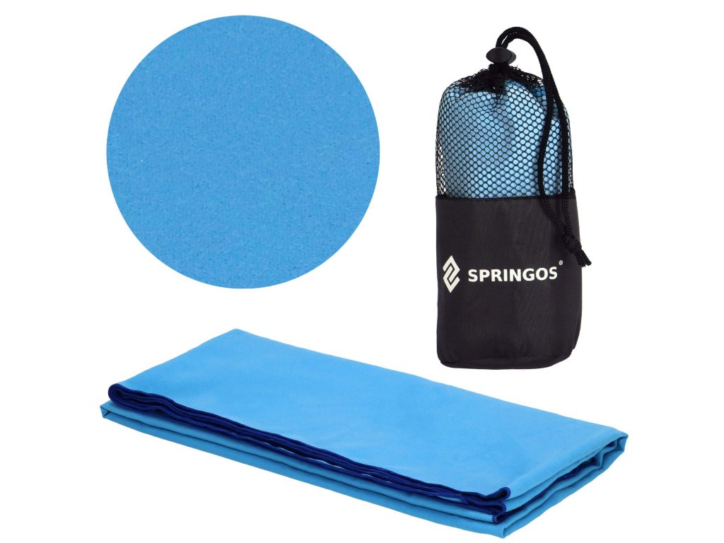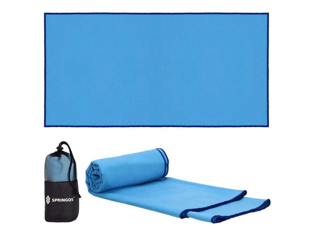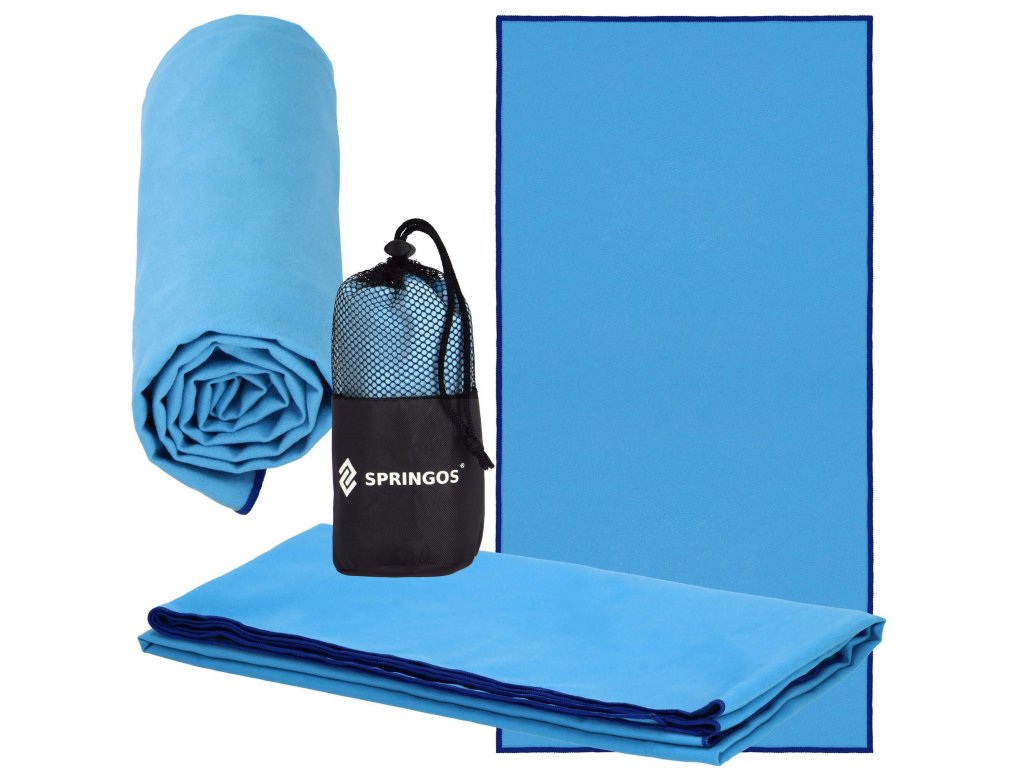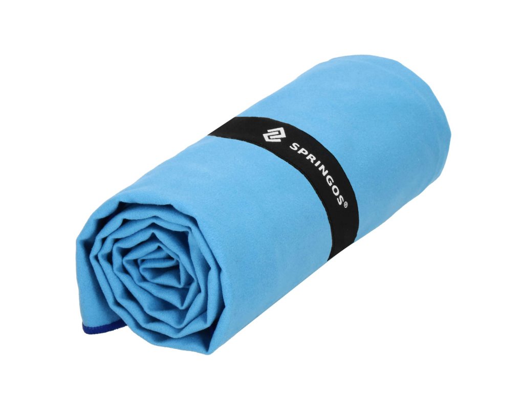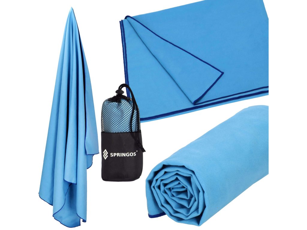 - Znamka: SpringosVelikost: 90 x 180 cmMaterial: mikrovlaknaBarva: svetlo modratemno modra overlock obrobaDimenzija v etuiju: 26 x 13 x 8 cmEtui z zatezno vrvicoPrišita elastika z logotipom Springos za vezanje brisače
